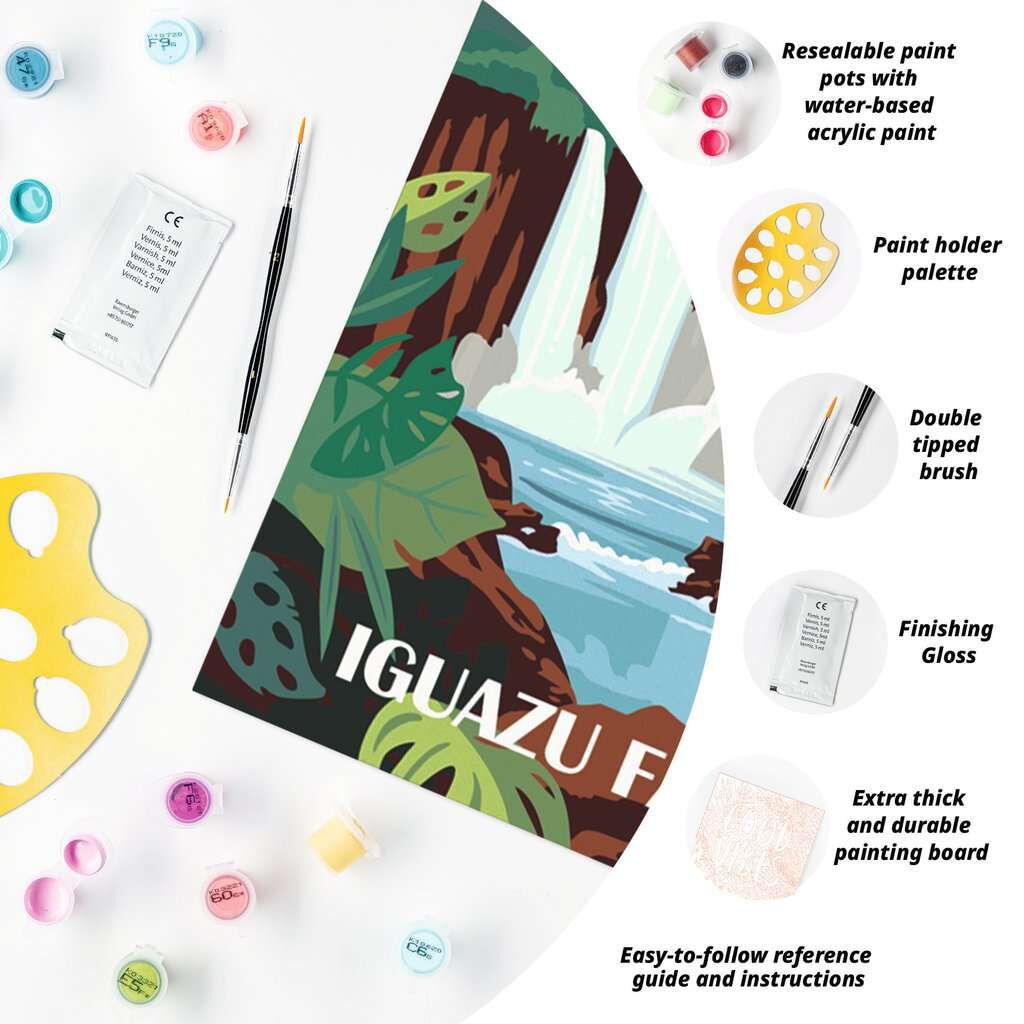 Coole Motive, leuchtende Farben und glänzender Lack für ein perfektes Finish. Das trendige Motiv Iguazu Wasserfälle sorgt für großartigen Malspaß für Erwachsene ab 12 Jahren. Die Motivlinien sind bereits aufgedruckt und nummeriert und werden mit den fertig gem...