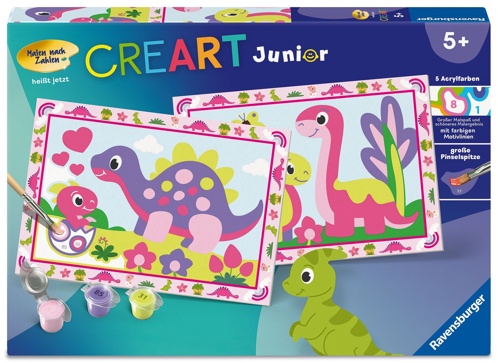 Farbige Motivlinien: Mehr Malspaß und ein schöneres Ergebnis! Dank der farbigen Motivlinien, die die Malbereiche umreißen, erkennen Kinder schneller das gesamte Motiv und die Farben. Das farbenfrohe Motiv Bunte Dinosaurier ist eine tolle Geschenkidee für Kinde...