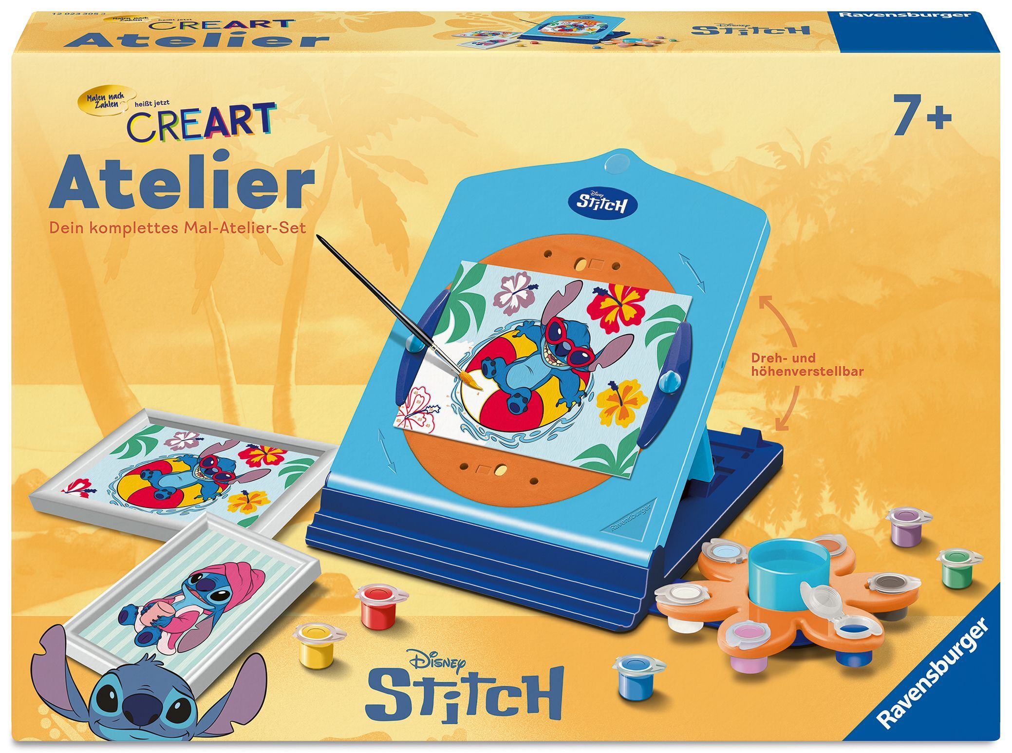 Mit dem Atelier mit Stitch macht Malen ab 7 Jahren noch mehr Spaß! Die dreh- und höhenverstellbare Staffelei wird für die ideale Malposition individuell angepasst und bietet eine Aufbewahrungsmöglichkeit für alle Materialien.Dank der farbigen Motivlinien, die ...