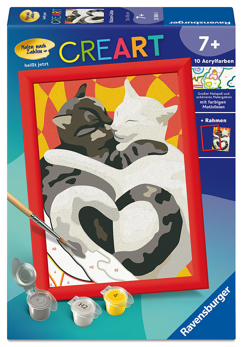 Farbige Motivlinien: Größerer Malspaß & ein schöneres Ergebnis! Dank der farbigen Motivlinien, können die Kinder das ganze Motiv Katzen-Liebe und die Farben schneller erkennen. Der Pinsel hat eine gute Führung und so entsteht ein perfektes Bild. Die schöne...