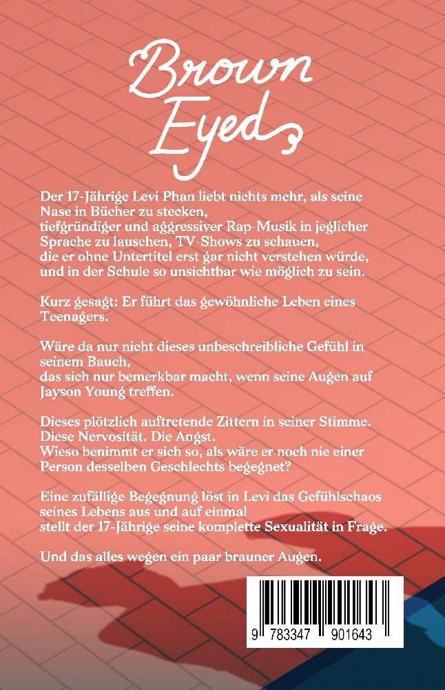 Band 1 der "Brown Eyed" Dilogie, jetzt komplett! Band 2 Chestnut Eyed ab sofort erhältlich. Der 17-Jährige Levi Phan liebt nichts mehr, als seine Nase in Bücher zu stecken, tiefgründiger und aggressiver Rap-Musik in jeglicher Sprache zu lauschen, TV-Shows zu s...