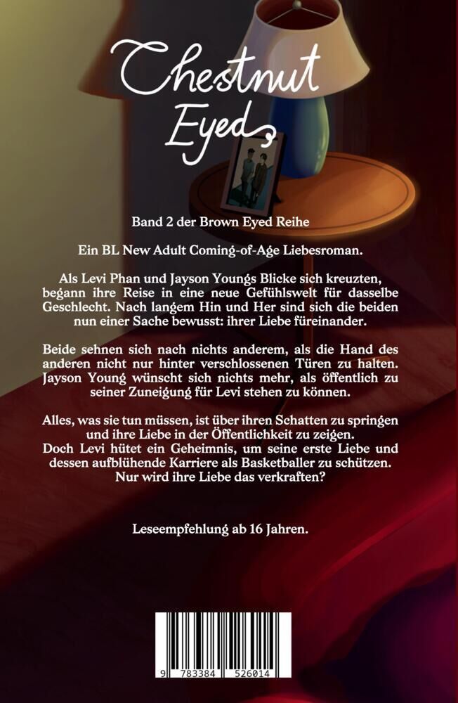 Band 2 der Brown Eyed Reihe Ein BL New Adult Coming-of-Age Liebesroman. Als Levi Phan und Jayson Youngs Blicke sich kreuzten, begann ihre Reise in eine neue Gefühlswelt für dasselbe Geschlecht. Nach langem Hin und Her sind sich die beiden nun einer Sache bewus...