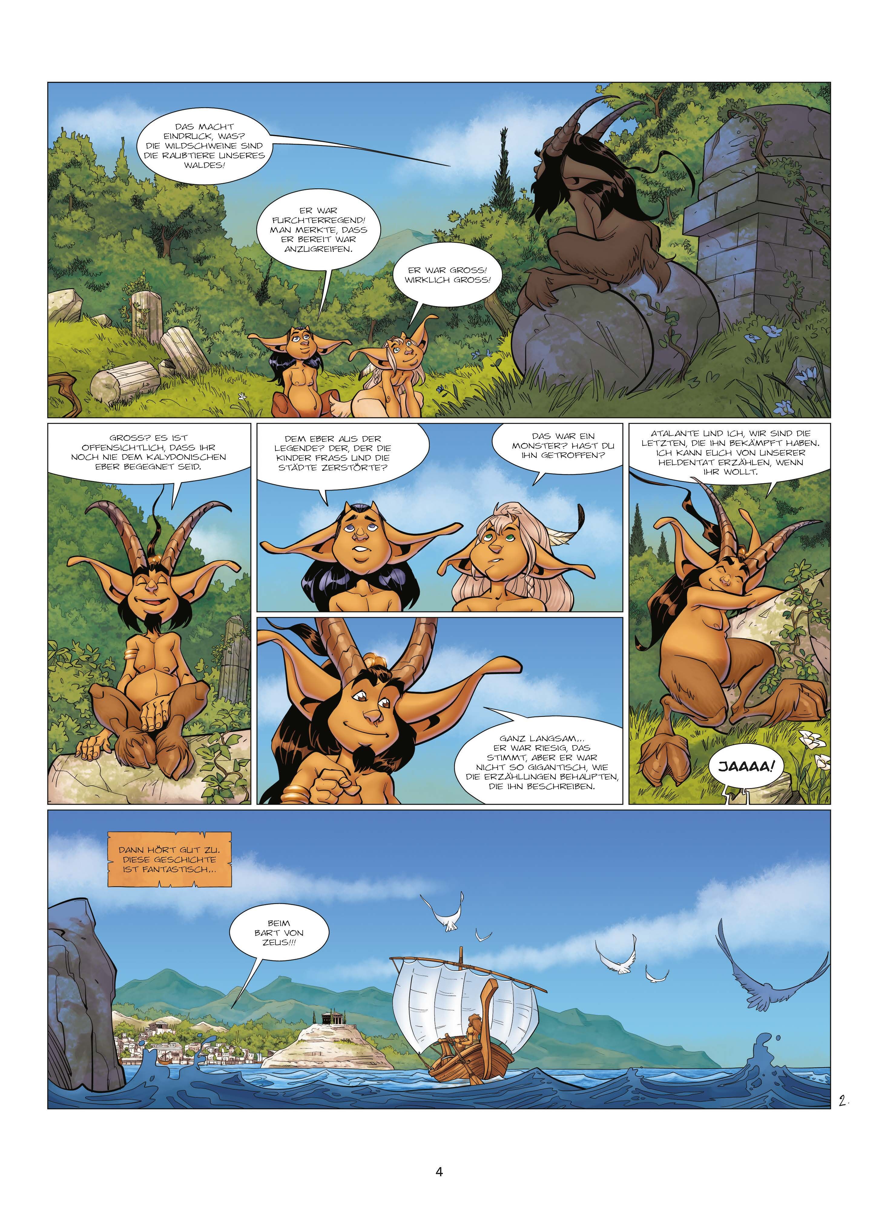 Die Argonauten sind einem riesigen, zerstörerischen Wildschwein auf der Spur. Atalante, Pyros und Herakles schließen sich ihrer Jagd an, und schon bald entbrennt ein erbarmungsloses Duell zwischen Atalante und dem Untier. Denn das Schwein steht unter dem Schut...