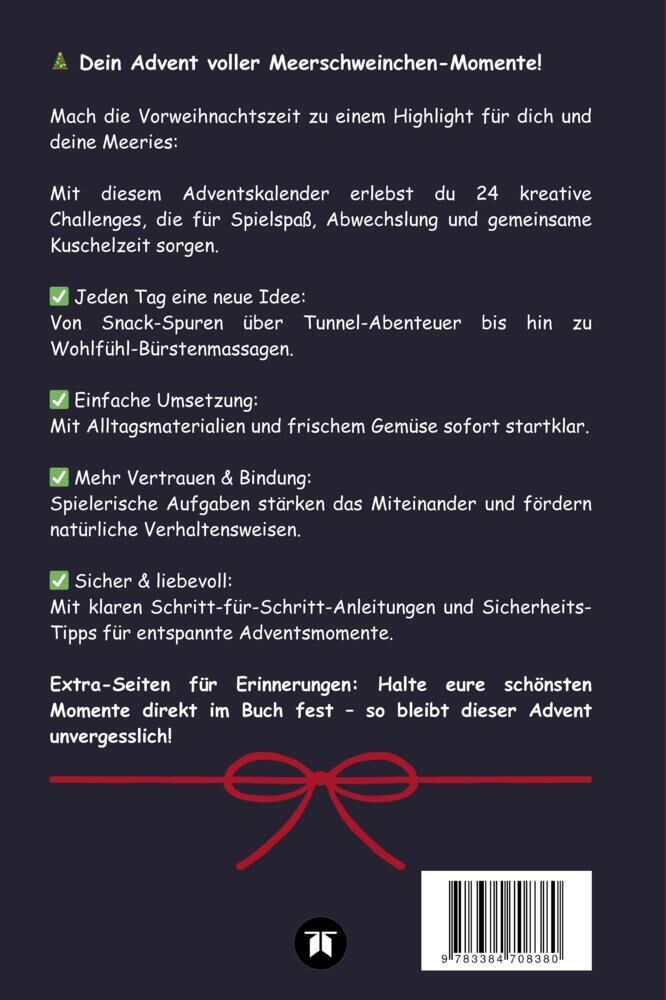 🐹 Der Adventskalender für glückliche Meerschweinchen! 🎄 Mach diesen Advent zu einem besonderen Erlebnis für dich und deine Meerschweinchen! Mit dem Adventskalender für Meerschweinchen erhältst du 24 kreative Challenges, die für Abwechslung sorg...