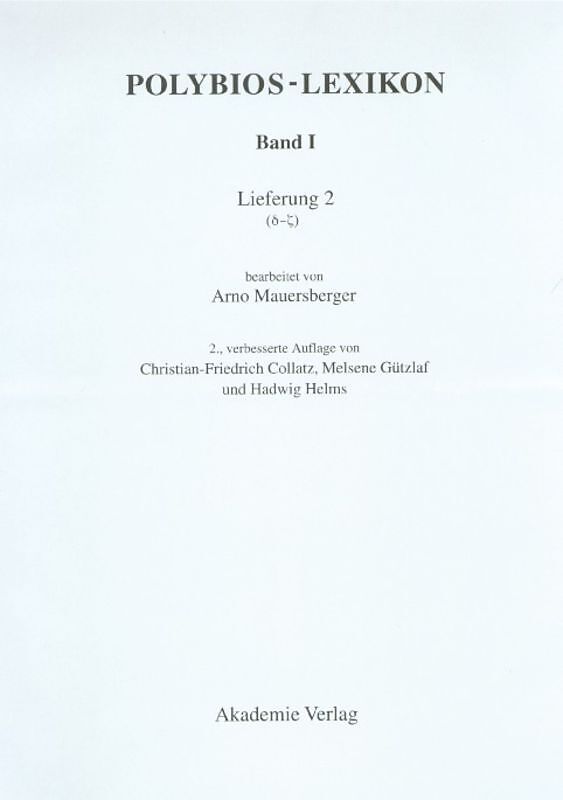 Das seit 1949 von der Berliner Akademie der Wissenschaften betreute Polybios-Lexikon erschließt in Form eines Bedeutungswörterbuchs umfassend den Wortschatz der Historien des Polybios (um 200-120 v. Chr.), der wichtigsten Quelle für die Geschichte der hellenis...