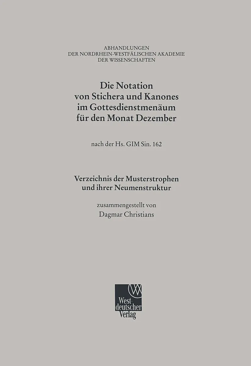 1. Die Edition des bisher in drei Teilbänden vorliegenden 1 Gottesdienstmenäums für Dezember erfolgte auf der Grundlage der Handschrift Nr. 162 der Synodalsammlung des 2 Historischen Museums in Moskau. Diese Handschrift aus dem 12. Jahrhundert gehört zu einem ...