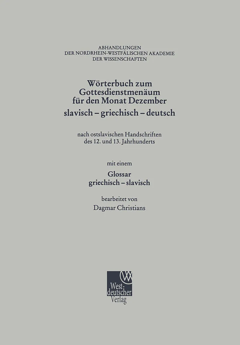 Wörterbuch zum Gottesdienstmenäum für den Monat Dezember slavisch - griechisch - deutsch