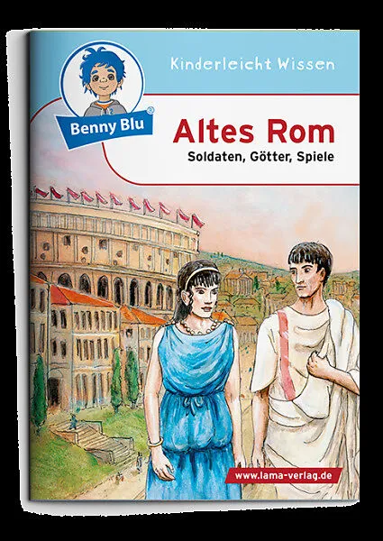 Römisches Leben. Benny Blu macht mit dir eine Zeitreise ins alte Rom. Wie lebten die Römer? Welche Götter verehrten sie? Wie kleideten sie sich? Und was gab es zu essen? Benny Blu Lernbuch, Format DIN A6, 32 Seiten, geheftet, 4/4 farbig
