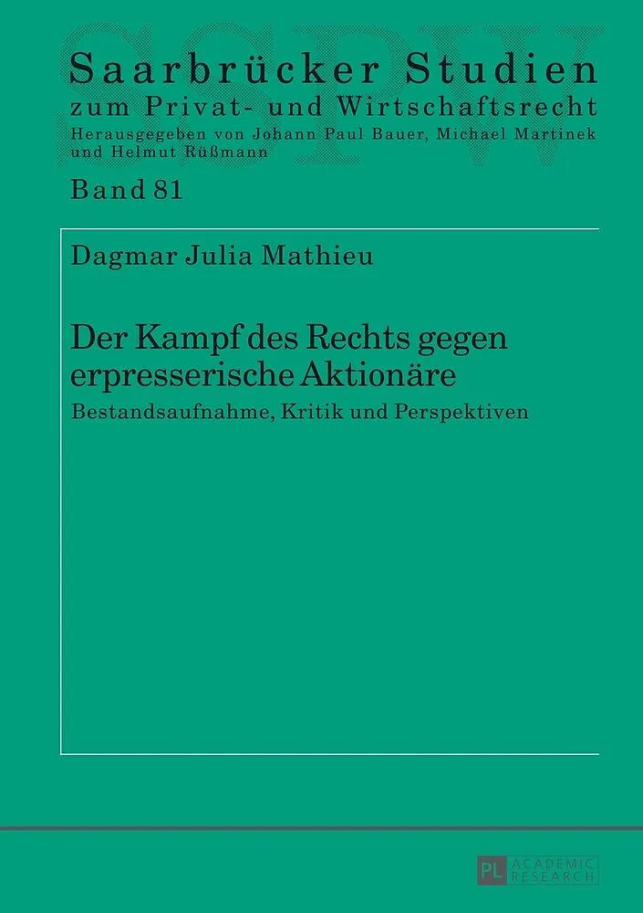 Das Buch fordert eine Grundsatzreform im Kampf gegen erpresserische Aktionäre. Es verweist nach Abschaffung von Registersperre und Freigabeverfahren in Umkehrung der Darlegungs- und Beweislast auf den einstweiligen Rechtsschutz der Zivilprozessordnung und gest...