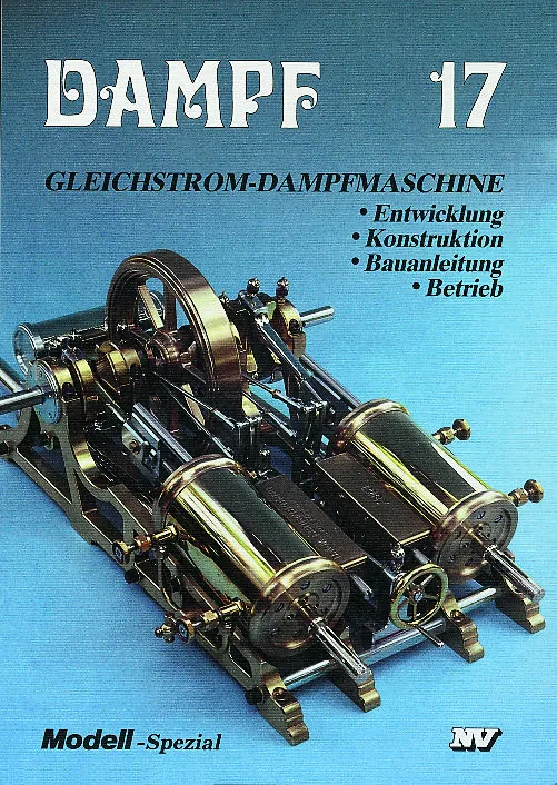 Sehr ausführliche Bauanleitung mit Zeichnungen für eine zweizylindrige, doppelt wirkende, schrägliegende Gleichstrom-Dampfmaschine für Schiffsmodelle. Entwicklung, Konstruktion, Betrieb, Literaturhinweise.