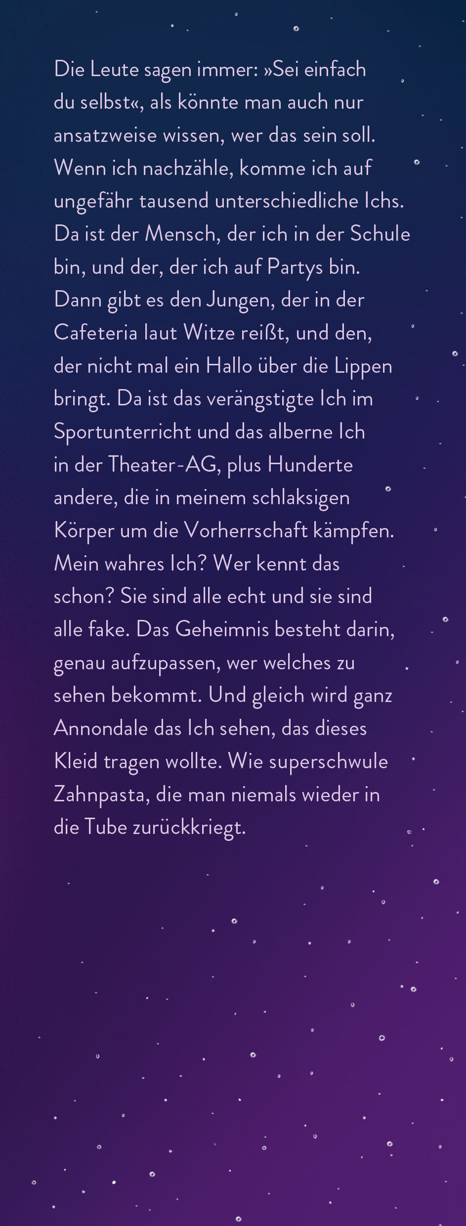 Jeder(Mann) kann ein Kleid tragen. Ganz wie er selbst. So fühlt sich Mark, als er beim Talentwettbewerb der Highschool in einem Kleid auftritt. Doch er hat nicht damit gerechnet, dass sein Freund sich daraufhin von ihm trennt. Mark schwört sich, zukünftig die ...