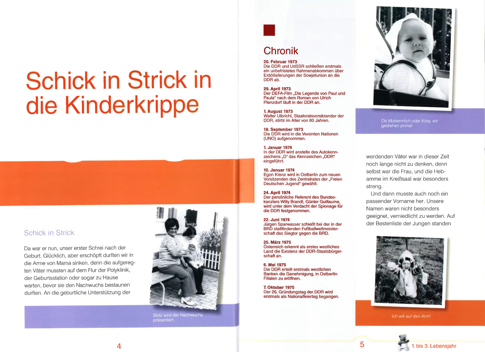 Jahrgang 1973 wir wurden in selbst gestrickte Strampler gesteckt und saßen in der Kinderkrippe nebeneinander auf dem Töpfchen. Im Kindergarten malten wir das Kind mit Fahne. Als Schulkinder lasen wir die ABC-Zeitung, waren in den verschiedensten AGs aktiv und ...