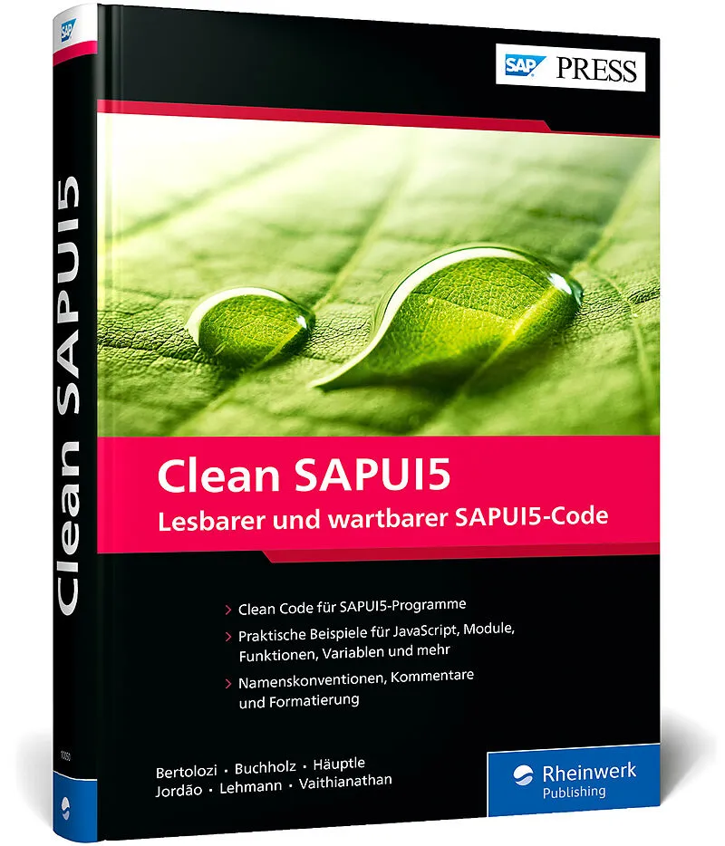 Optimieren Sie Ihren SAPUI5-Code für bessere Lesbarkeit und Wartbarkeit! Entdecken Sie in diesem Buch bewährte Methoden von Experten, um JavaScript-Funktionen effektiv zu nutzen und Ihren SAPUI5-Code zu verbessern. Tauchen Sie ein in detaillierte Beispiele und...Optimieren Sie Ihren SAPUI5-Code für bessere Lesbarkeit und Wartbarkeit! Entdecken Sie in diesem Buch bewährte Methoden von Experten, um JavaScript-Funktionen effektiv zu nutzen und Ihren SAPUI5-Code zu verbessern. Tauchen Sie ein in detaillierte Beispiele und Erklärungen zu Modulen, Klassen, Funktionen, Namen, Variablen, Literalen, Kommentaren, Code-Metriken und mehr. Übernehmen Sie die Best Practices von den Profis für Formatierung, Testen, Implementierung und vieles mehr!Aus dem Inhalt:JavaScriptModule und KlassenFunktionenNamensgebungVariablen und LiteraleKontrollstrukturFehlerbehandlungFormatierungStatische Code-PrüfungTestenImplementierung
