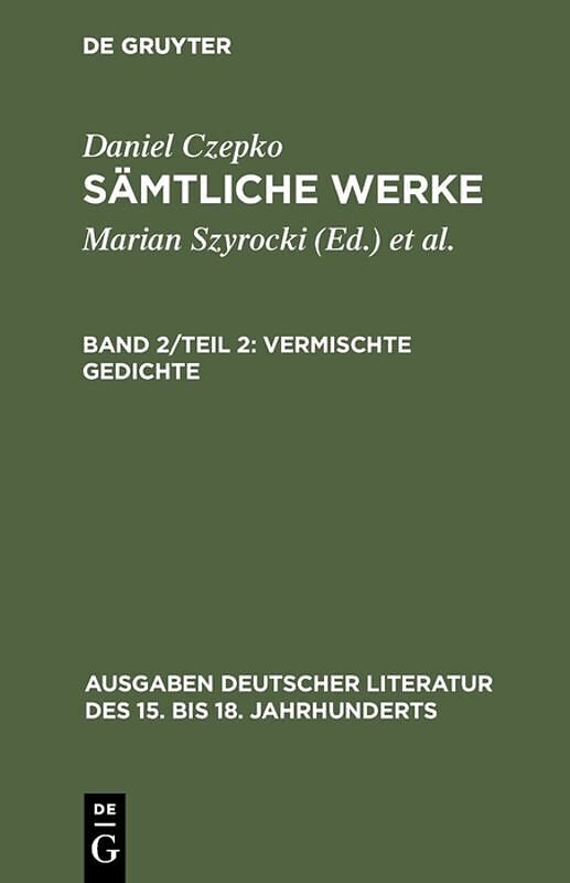 Keine ausführliche Beschreibung für "Vermischte Gedichte" verfügbar. Klappentext Die Reihe Ausgaben Deutscher Literatur des VV. bis XVIII. Jahrhunderts" startete 1967 mit dem Ziel, zur besseren Textkenntnis der vernachlässigten mittleren deutschen un...