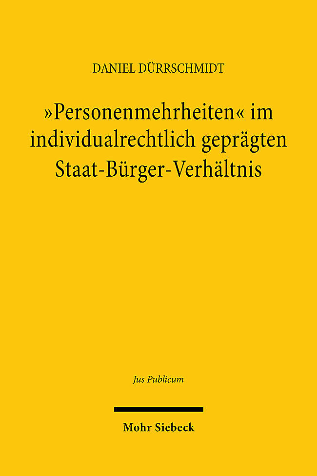 In real life, bodies of persons are qualitatively heterogeneous and present in large numbers. The frequently assumed individual legal character of the legal system and the state-citizen relationship seems to contradict this actual finding. Daniel Dürrschmidt s...
