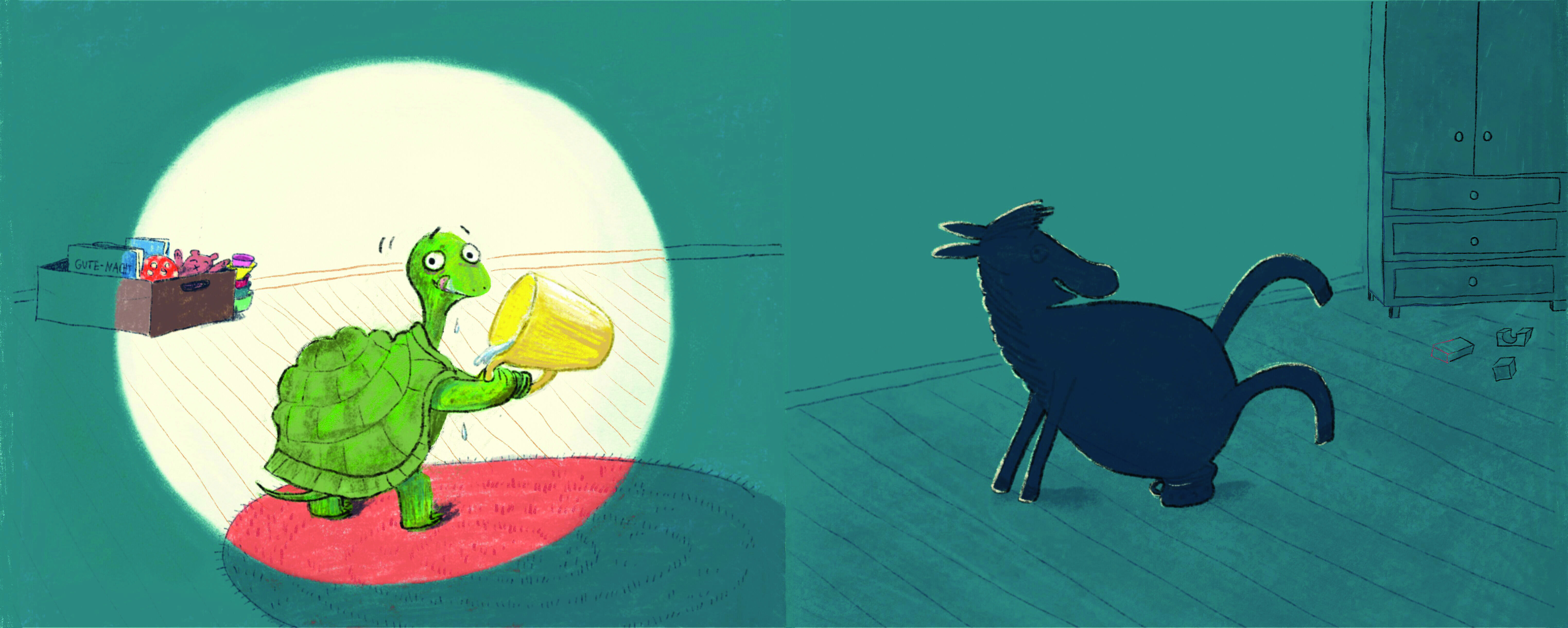 In Lias Zimmer tauchen rätselhafte Schatten auf. Was ist das nur? Beim Umblättern wird aus dem Schatten eine kleine Schildkröte, die noch einen Schluck Milch braucht. Da, noch ein Schatten! Ist das ein Pferd, das noch aufs Töpfchen muss? Und was ist das? Ein k...