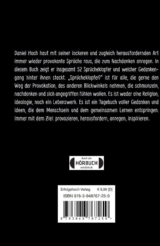 Daniel Hoch haut mit seiner lockeren und zugleich herausfordernden Art immer wieder provokante Sprüche raus, die zum Nachdenken anregen. In diesem Buch zeigt er insgesamt 52 Sprücheklopfer und welcher Gedankengang hinter ihnen steckt. "Sprücheklopfer?&quo...