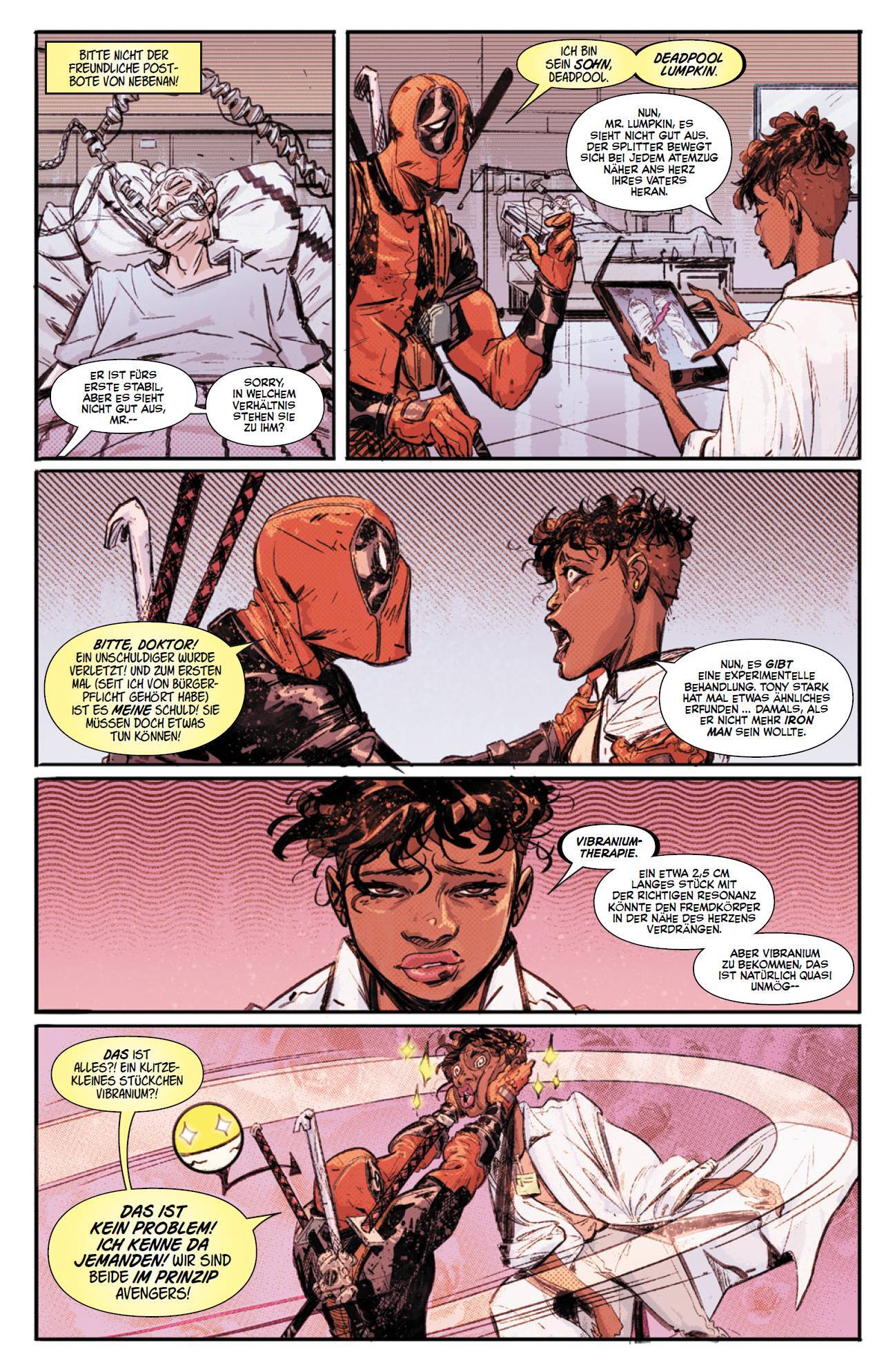 RUMBLE IN THE JUNGLE! Als Marvels beliebtester Postbote bei einem Fight zwischen Deadpool und Wrecker unter die Räder kommt, fliegt der geschwätzige Söldner schnurstracks nach Wakanda. Denn nur der wertvollste Rohstoff der Welt kann den armen Kerl noch retten....