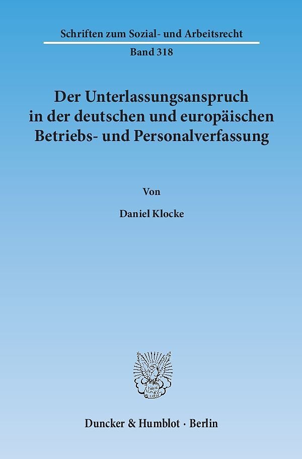 Der Unterlassungsanspruch in der deutschen und europäischen Betriebs- und Personalverfassung.