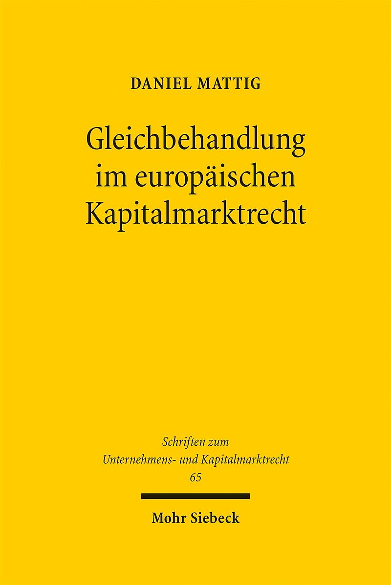 In the aftermath of the global financial crisis, European legislators have greatly intensified capital market regulation, in particular by implementing equal treatment obligations. Daniel Mattig analyses these control mechanisms and develops a general principl...