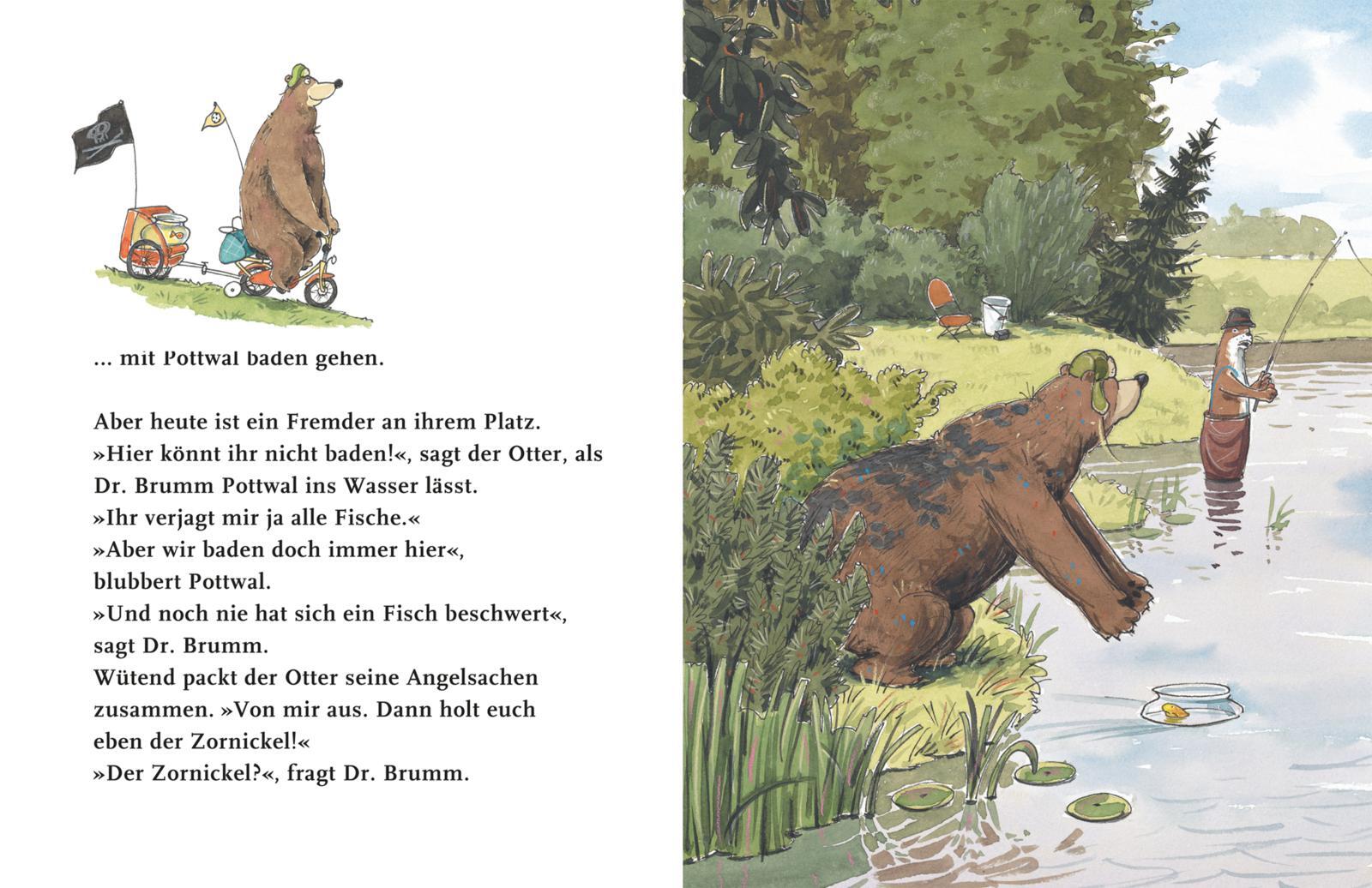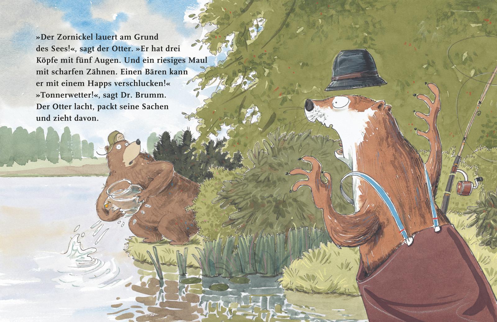 Eine turbulente Bilderbuchgeschichte für Kinder ab 4 Jahren. Am Grund des Sees soll der wilde und gefährliche Zornickel lauern. Der kann sogar einen Bären mit einem Happs verschlingen. Auch wenn Dr. Brumm am liebsten gerne baden gehen würde, bleibt er lieber ...