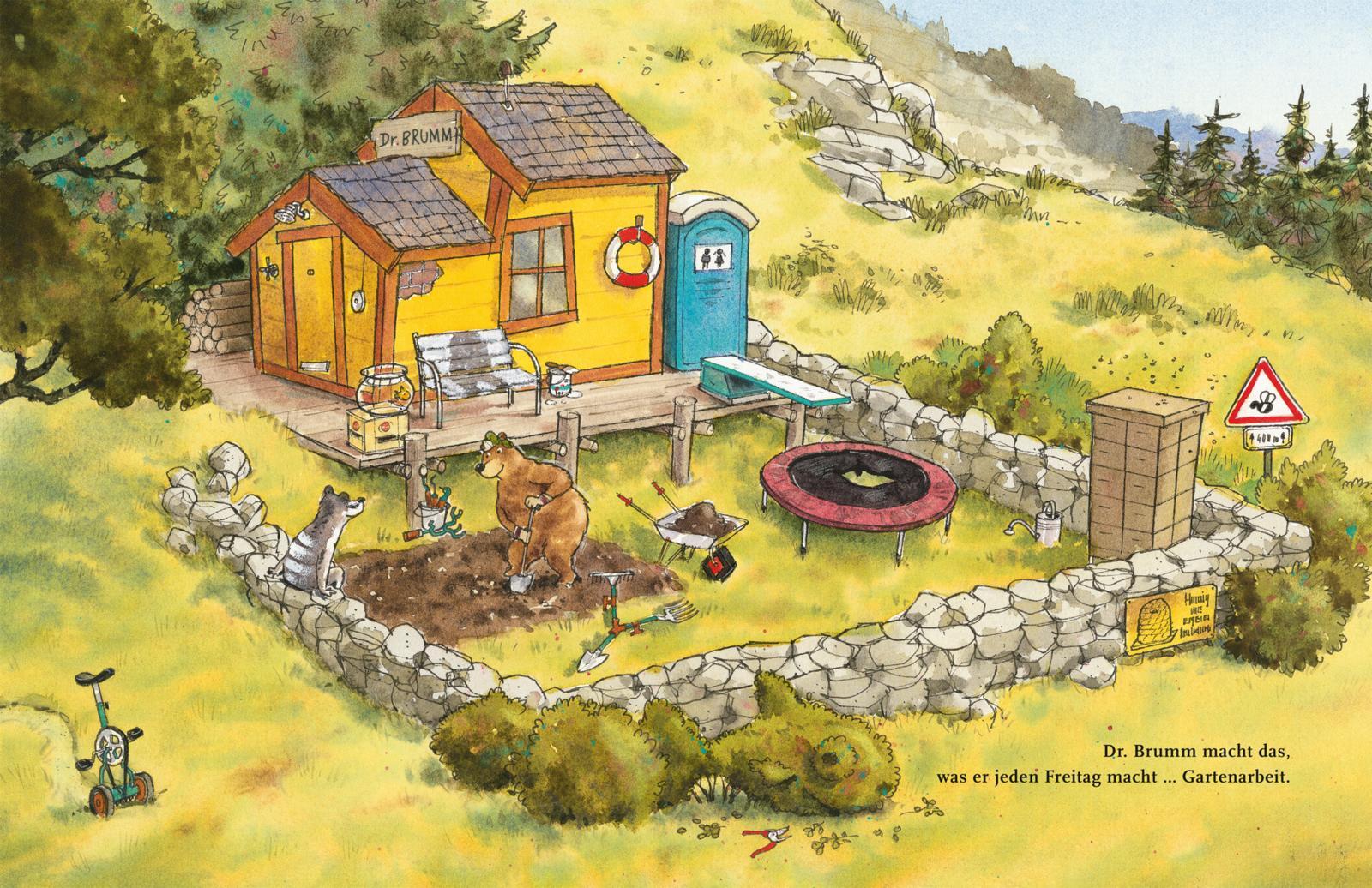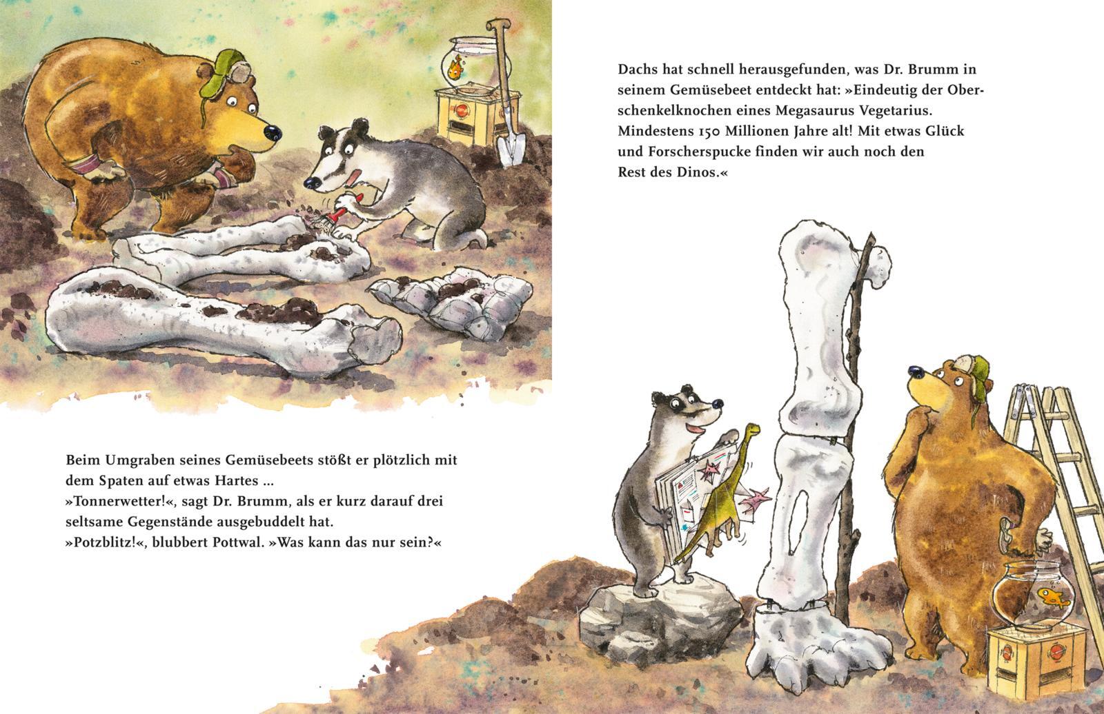 Dr. Brumm im Dinofieber! Bilderbuch für Kinder ab 4 Jahren. Dr. Brumm macht das, was er jeden Freitag macht: Gartenarbeit. Als er sein Gemüsebeet umgräbt, stößt er auf etwas sehr Ungewöhnliches ... einen waschechten Dinoknochen! Mit Hilfe von Dachs und Pottwa...