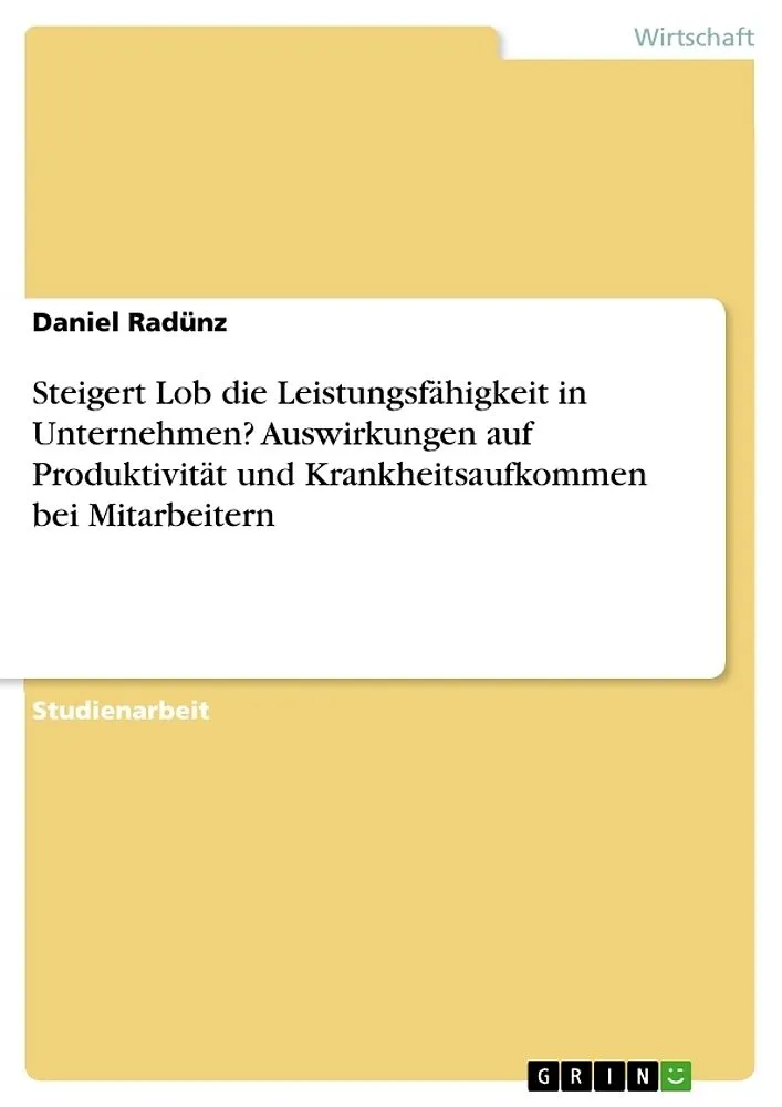 Studienarbeit aus dem Jahr 2015 im Fachbereich BWL - Unternehmensführung, Management, Organisation, Note: 1,3, ( Europäische Fernhochschule Hamburg ), Sprache: Deutsch, Abstract: Die folgende Hausarbeit befasst sich damit, ob Lob, als positiver Verstärker bei ...