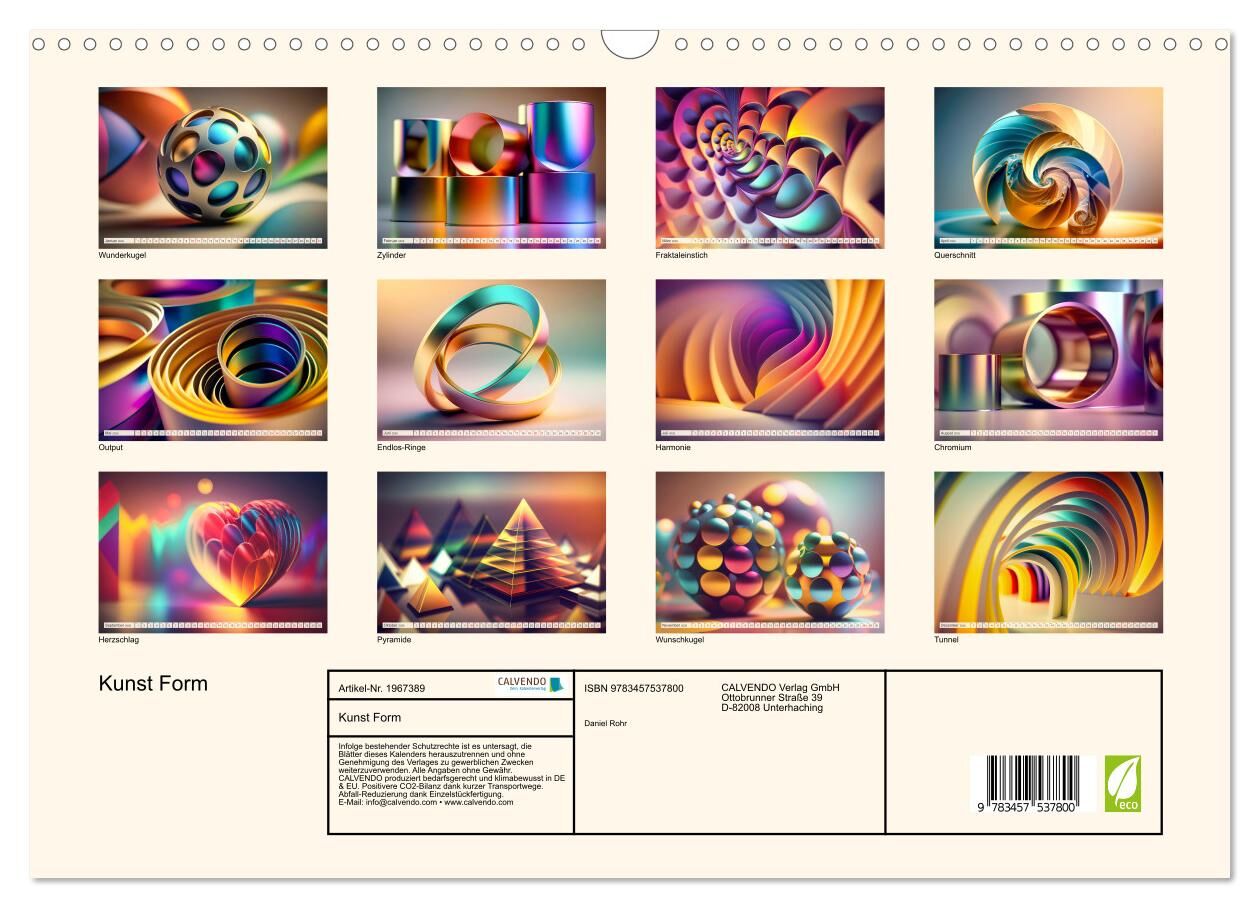 Kunst Form (Wandkalender 2026 DIN A3 quer), CALVENDO Monatskalender