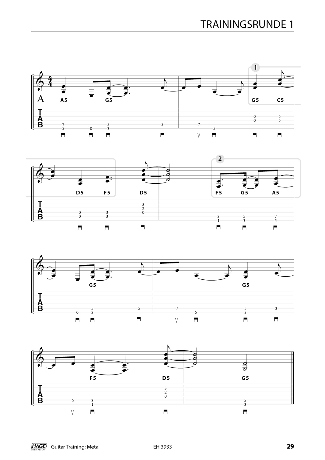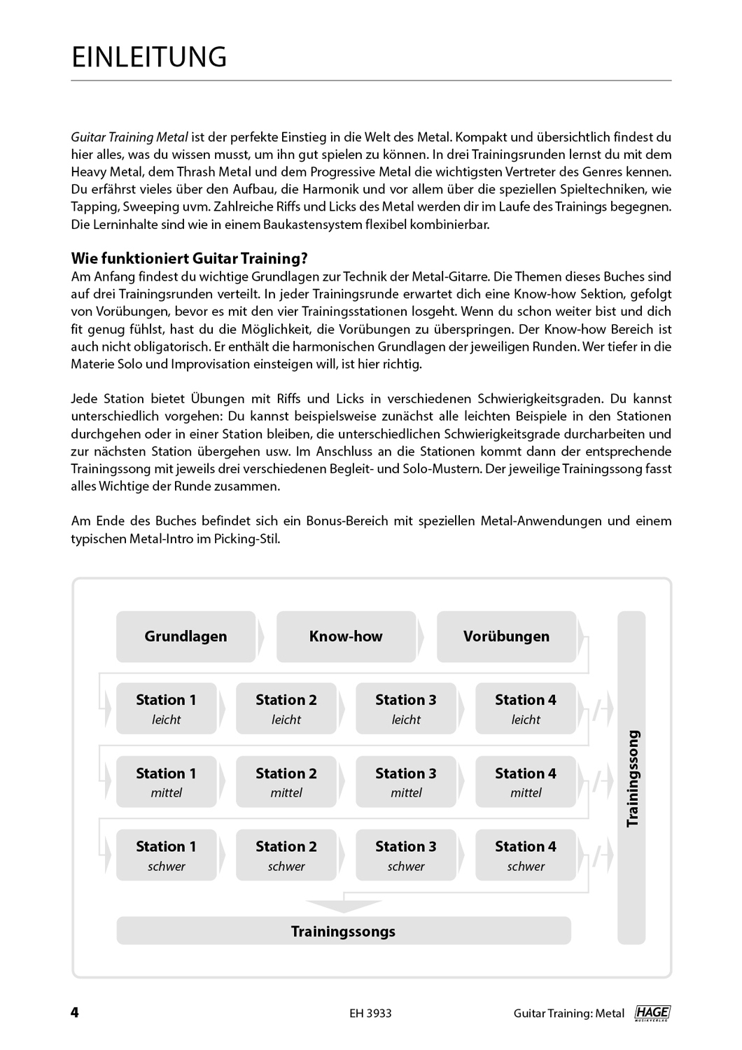 Einleitung Der Metal - Eine kurze Übersicht Grundlagen Trainingsrunde 1: Heavy Metal 1. Know How 2. Vorübungen 3. Station 1: Riffs 4. Station 2: Riffs 5. Station 3: Licks 6. Station 4: Licks 7. Trainingssong: Begleitung 8. Trainingssong: Solo 9. Fingersätze Trainingsrunde 2: Thrash Metal 10. Know How 11. Vorübungen 12. Station 1: Riffs 13. Station 2: Riffs 14. Station 3: Licks 15. Station 4: Licks 16. Trainingssong: Begleitung 17. Trainingssong: Solo 18. Fingersätze Trainingsrunde 3: Progressive Metal 19. Know How 20. Vorübungen 21. Station 1: Riffs 22. Station 2: Riffs 23. Station 3: Licks 24. Station 4: Licks 25. Trainingssong: Begleitung 26. Trainingssong: Solo 27. Fingersätze Bonus-Training Legende der Noten & Tabulatur Musikalische Fachbegriffe Playlist-Inhalt