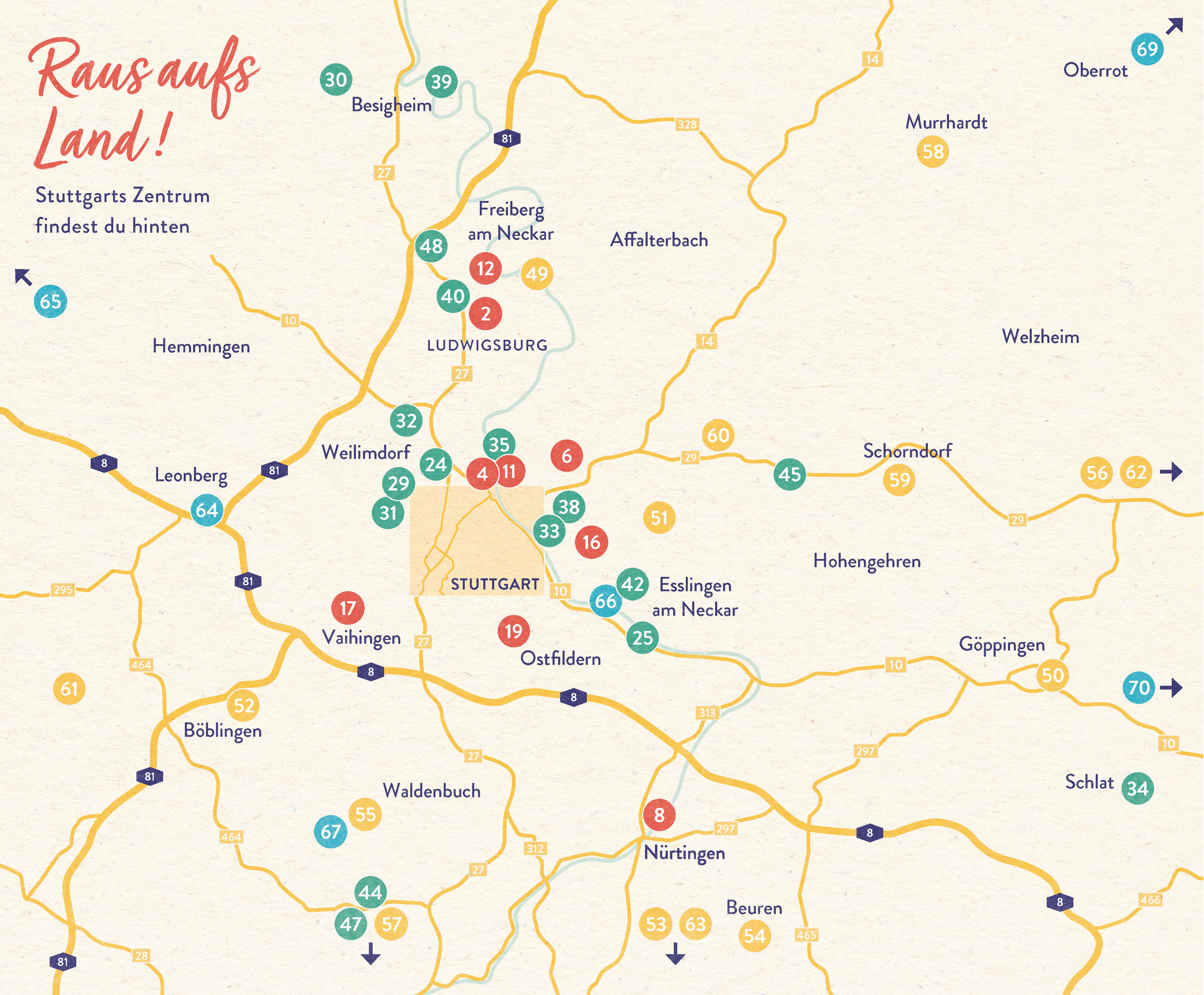 Ob Brotbacken oder Baden, Bogenschießen oder Ballonfahren, Burg oder Baumhaus in und um die Schwabenmetropole finden sich faszinierend vielfältige Flecken, an denen man kurz durchatmen, ein paar Stunden ausspannen oder auch ein ganzes Wochenende dem Alltag ent...