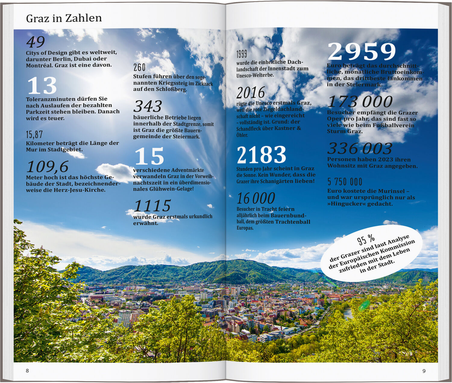 Im sonnenverwöhnten Graz bekommen Avantgardefestivals wie Steirischer Herbst und Styriarte nicht weniger Applaus als das Aufsteirern, das größte Trachtenspektakel Österreichs, hier treffen sich mediterranes Lebensgefühl, Genussfreudigkeit und sympathischer Sc...