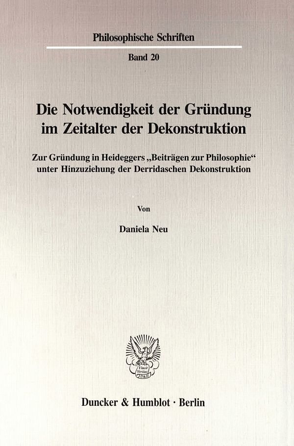 Die Frage nach dem Grund ist nicht nur eine zentrale Thematik des Heideggerschen Denkens, sondern auch der zeitgenössischen Dekonstruktion. In beiden Fällen entspringt sie der geschichtlichen Erfahrung der Abgründigkeit des Seins in der Endzeit der Metaphysik....