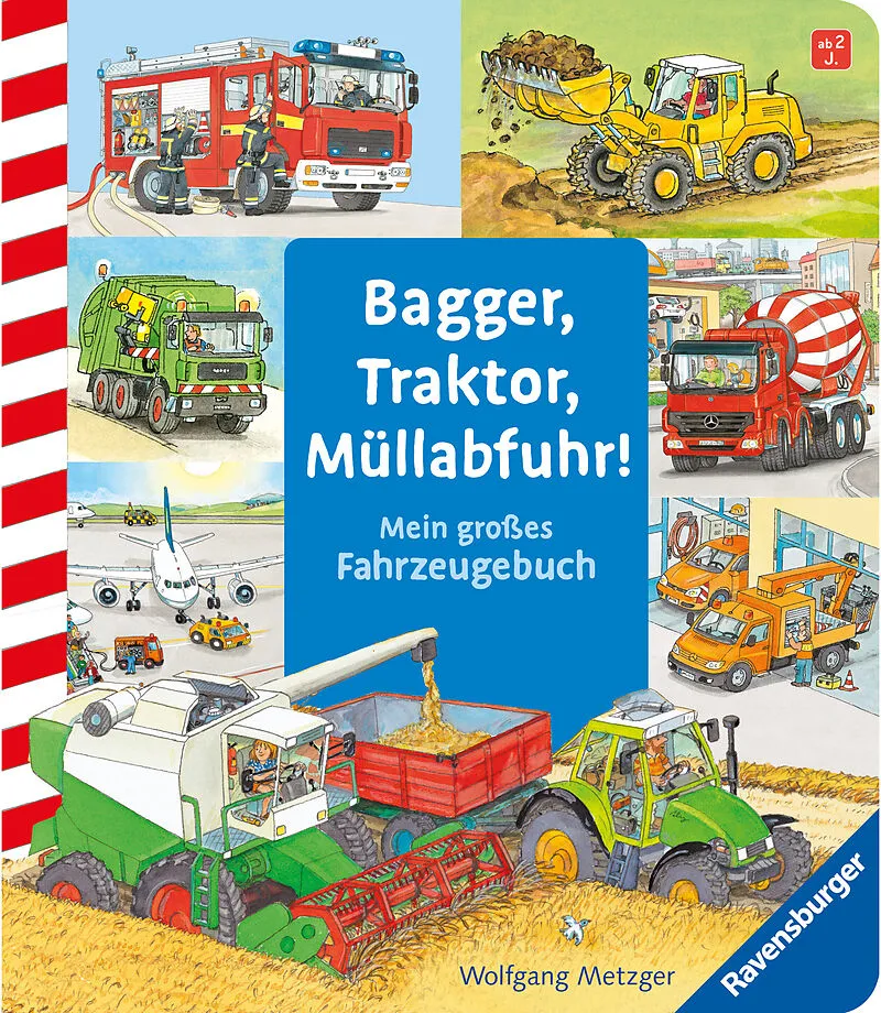 Bagger, Traktor, Müllabfuhr! Begleite den Kran auf der Baustelle, fahr mit dem Mähdrescher aufs Feld, beobachte das Müllauto bei der Arbeit oder schau dem bunten Treiben am Flughafen zu. Kinder ab 2 Jahren begegnen hier ihren Lieblingsfahrzeugen und lernen vie...