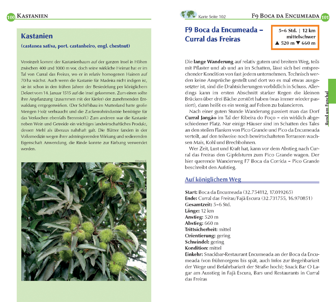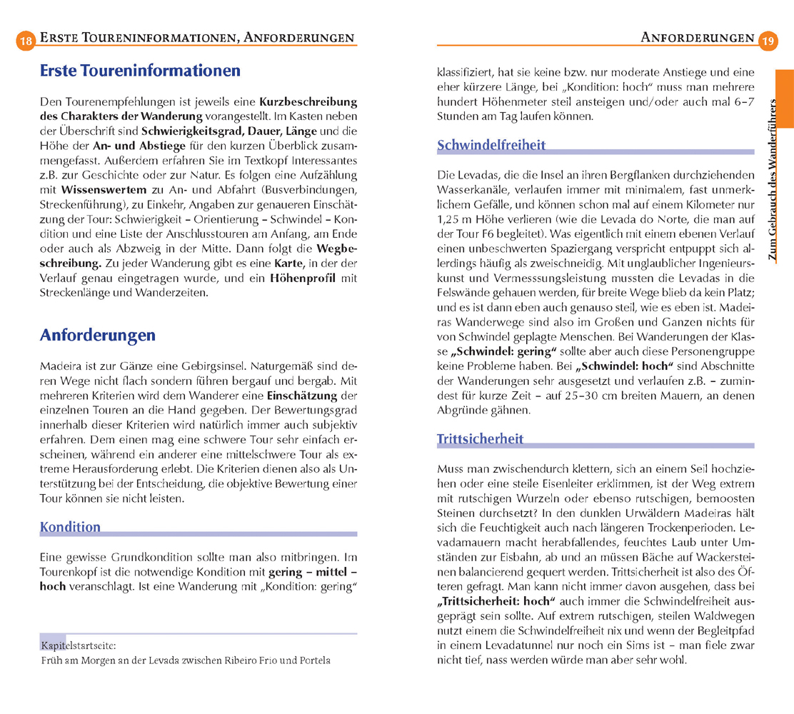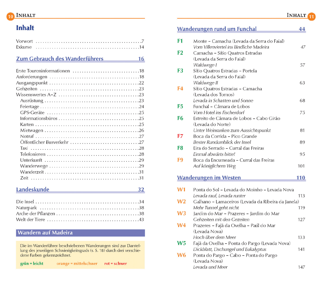 Inhalt: Vorwort . . . . . . . . . . . . . . . . . . . . . . . . . . . . . . . . . . . . . . . . . . . . . .7 Exkurse . . . . . . . . . . . . . . . . . . . . . . . . . . . . . . . . . . . . . . . . . . . . .14 Zum Gebrauch des Wanderführers 16 Erste Toureninformationen . . . . . . . . . . . . . . . . . . . . . . . . . . . . .18 Anforderungen . . . . . . . . . . . . . . . . . . . . . . . . . . . . . . . . . . . . . . .18 Ausgangspunkt . . . . . . . . . . . . . . . . . . . . . . . . . . . . . . . . . . . . . . .22 Gehzeiten . . . . . . . . . . . . . . . . . . . . . . . . . . . . . . . . . . . . . . . . . . .23 Wissenswertes AZ . . . . . . . . . . . . . . . . . . . . . . . . . . . . . . . . . . .23 Ausrüstung . . . . . . . . . . . . . . . . . . . . . . . . . . . . . . . . . . . . . . . . .23 Feiertage . . . . . . . . . . . . . . . . . . . . . . . . . . . . . . . . . . . . . . . . . . .24 GPS-Geräte . . . . . . . . . . . . . . . . . . . . . . . . . . . . . . . . . . . . . . . .25 Informationsbüros . . . . . . . . . . . . . . . . . . . . . . . . . . . . . . . . . . .25 Karten . . . . . . . . . . . . . . . . . . . . . . . . . . . . . . . . . . . . . . . . . . . . .25 Mietwagen . . . . . . . . . . . . . . . . . . . . . . . . . . . . . . . . . . . . . . . . .26 Notruf . . . . . . . . . . . . . . . . . . . . . . . . . . . . . . . . . . . . . . . . . . . . .27 Öffentlicher Busverkehr . . . . . . . . . . . . . . . . . . . . . . . . . . . . . .27 Taxi . . . . . . . . . . . . . . . . . . . . . . . . . . . . . . . . . . . . . . . . . . . . . . .28 Telefonieren . . . . . . . . . . . . . . . . . . . . . . . . . . . . . . . . . . . . . . . .28 Unterkunft . . . . . . . . . . . . . . . . . . . . . . . . . . . . . . . . . . . . . . . . .29 Wanderwege . . . . . . . . . . . . . . . . . . . . . . . . . . . . . . . . . . . . . . .29 Wanderzeit . . . . . . . . . . . . . . . . . . . . . . . . . . . . . . . . . . . . . . . . .31 Zeit . . . . . . . . . . . . . . . . . . . . . . . . . . . . . . . . . . . . . . . . . . . . . . .31 Landeskunde 32 Die Insel . . . . . . . . . . . . . . . . . . . . . . . . . . . . . . . . . . . . . . . . . . . . .34 Naturpark . . . . . . . . . . . . . . . . . . . . . . . . . . . . . . . . . . . . . . . . . . .38 Arche der Pflanzen . . . . . . . . . . . . . . . . . . . . . . . . . . . . . . . . . . . .38 Welt der Tiere . . . . . . . . . . . . . . . . . . . . . . . . . . . . . . . . . . . . . . . .43 Wanderungen rund um Funchal 44 F1 Monte Camacha (Levada da Serra do Faial) Vom Villenviertel ins ländliche Madeira 47 F2 Camacha Sítio Quatros Estradas (Levada da Serra do Faial) Waldwege I 57 F3 Sítio Quatros Estradas Portela (Levada da Serra do Faial) Waldwege II 63 F4 Sítio Quatros Estradas Camacha (Levada dos Tornos) Levada in Schatten und Sonne 68 F5 Funchal Câmara de Lobos Vom Hotel ins Fischerdorf 75 F6 Estreito de Câmara de Lobos Cabo Girâo (Levada do Norte) Unter Weinranken zum Aussichtspunkt 81 F7 Boca da Corrida Pico Grande Bester Rundumblick der Insel 89 F8 Eira do Serrado Curral das Freiras Einmal abwärts bitte! 95 F9 Boca da Encumeada Curral das Freiras Auf königlichem Weg 101 Wanderungen im Westen 110 W1 Ponta do Sol Levada do Moinho Levada Nova Levada rauf, Levada runter 113 W2 Galhano Lamaceiros (Levada da Ribeira da Janela) Mehr Tunnel geht nicht 119 W3 Jardim do Mar Prazeres Jardim do Mar Gehzeiten mit den Gezeiten 127 W4 Prazeres Fajã da Ovelha Paúl do Mar (Levada Nova) Hoch über dem Meer 133 W5 Fajã da Ovelha Ponta do Pargo (Levada Nova) Dickblatt, Dschungel und Eukalyptus 141 W6 Ponta do Pargo Cabo Ponta do Pargo (Levada Nova) Levada und Meer 147 W7 Achadas da Cruz Fajã Quebrada Nova Euphorbien, Meer und Gärten 155 W8 Achadas da Cruz Lamaceiros (Levada do Moinho) Wo Feen tanzten und Mühlen klapperten 161 Wanderungen im westlichen Inselinneren 170 ZW1 Rabaçal Risco-Wasserfall 25 Quellen Rabaçal Der Klassiker 173 ZW2 Rabaçal Levada da Rocha Vermelha Rabaçal Abseits des Mainstreams 181 ZW3 Rabaçal Levada da Rocha Vermelha Fanal Auf unbekannten Wegen 187 ZW4 Anschluss PR13 Fanal/Paúl da Serra Levada do Alecrim An der Wiege der Ribeira da Janela 193 ZW5 Rabaçal Levada Alecrim Rabaçal Unter dem Wasserfall ist über dem Wasserfall 199 ZW6 Forsthaus Fanal Paúl da Serra Romantik im Nebelloch 207 ZW7 Fanal Ribeira da Janela (Levada dos Cedros) Im feuchten Baumtunnel 217 ZW8 Rabaçal Cova Grande/Cristo Rei (Levada do Paúl 2) Hoch über Calheta 225 ZW9 Cova Grande/Cristo Rei Forststation Bica da Cana (Levada do Paúl 2) An der Kuhlevada 231 ZW10 Pico Ruivo do Paúl Aussicht auf Meere aus Farn und Wasser 238 ZW11 Bica da Cana Boca da Encumeada (Levada do Norte) Ein Hexenhaus im Zauberwald 243 ZW12 Bica da Cana Pináculo Lombo de Mouro Bica da Cana (Levada da Serra) Ausflug mit Dusche und Aussicht 251 Wanderungen im östlichen Inselinneren 258 ZO1 Pico Arieiro Pico Ruivo Pico Arieiro Im Hochgebirge 261 ZO2 Achada do Teixeira Pico Ruivo Achada do Teixeira Im Hochgebirge 267 ZO3 Pico Ruivo-Schutzhütte Ilha Durch Wald und hohle Wege 272 ZO4 Queimadas Caldeirão Verde Caldeirão do Inferno Queimadas Zum Höllenschlund 283 ZO5 Boca da Encumeada Pico Ruivo Achada do Teixeira Entlang der Wasserscheide Madeiras 291 ZO6 Achada do Teixeira Pico Ruivo Curral das Freiras Vom höchsten Berg ins tiefste Tal 301 ZO7 Fajã da Nogueira Levada do Pico Ruivo Fajã da Nogueira In grünem Tal und dunklen Tunnels 309 ZO8 Fajã da Nogueira Levada da Serra do Faial Fajã da Nogueira Levada für Fortgeschrittene 315 Wanderungen im Osten 322 O1 Machico Caniçal Zum Aussichtspunkt 325 O2 Machico Porto da Cruz Über die gefährliche Scharte 331 O3 Maroços Pico do Facho ( Machico/Caniçal) Ländliches Madeira 338 O4 Ponta de São Lourenço In die Wüste 345 O5 Ribeiro Frio Portela Im Urwald 351 O6 Portela Maroços Die Welt der Farne 360 O7 Balcões Kaffeespaziergang zum Aussichtspunkt 367 Wanderungen im Norden 372 N1 Rundwanderung Chão da Ribeira da Seixal Paúl da Serra Chão da R