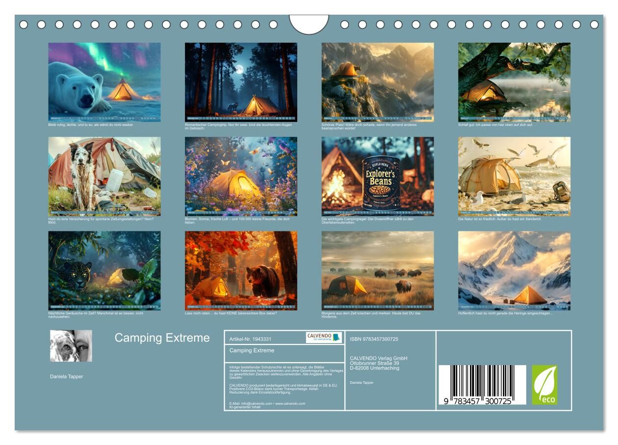 Camping - der perfekte Ort, um die Seele baumeln zu lassen und die wunderbare Natur zu genießen oder den Wahnsinn zu erleben! Dieser humorvolle, KI-generierte Kalender zeigt, was beim Zelten wirklich passieren kann: Idylle trifft auf ungebetene Gäste, Wetterka...