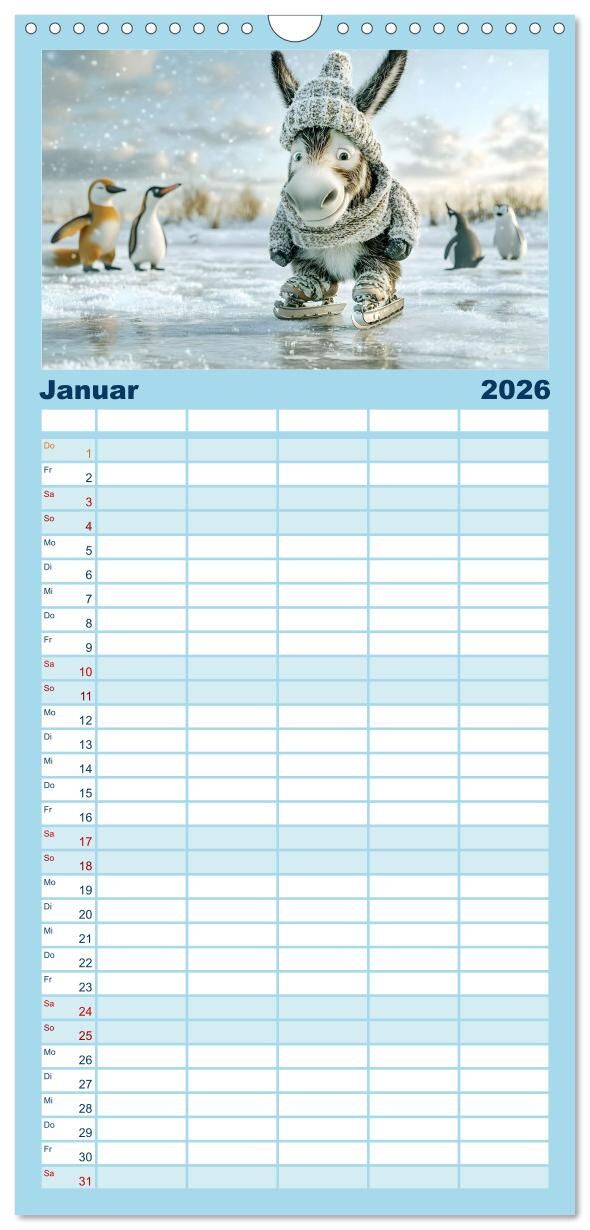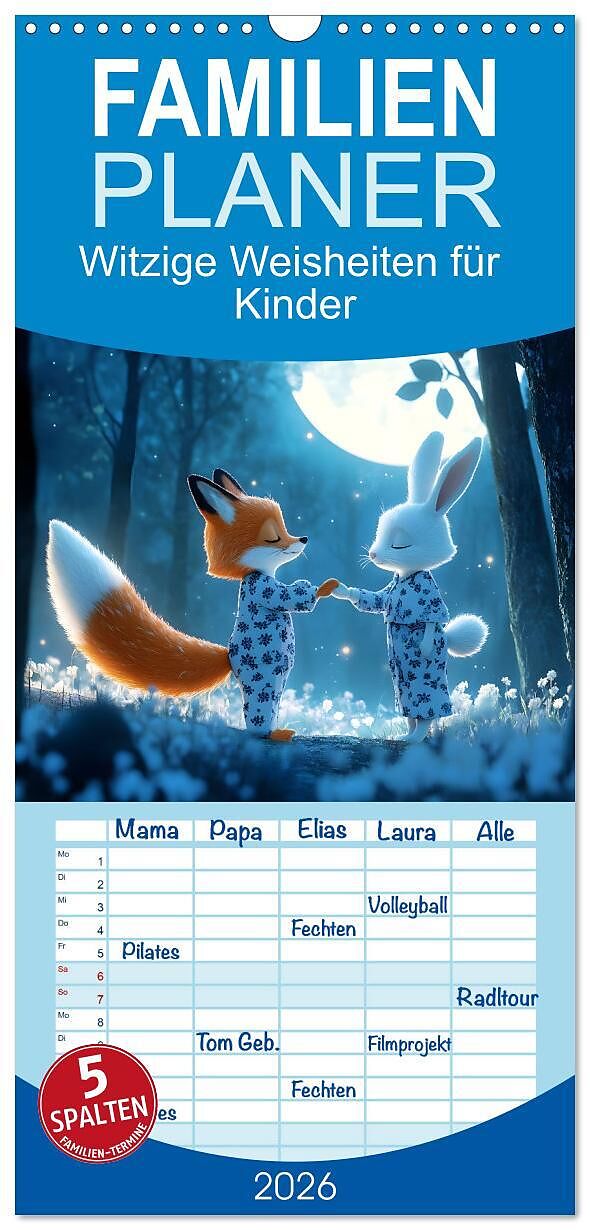 Familienplaner 2026 - Witzige Weisheiten für Kinder mit 5 Spalten (Wandkalender, 21 x 45 cm) CALVENDO