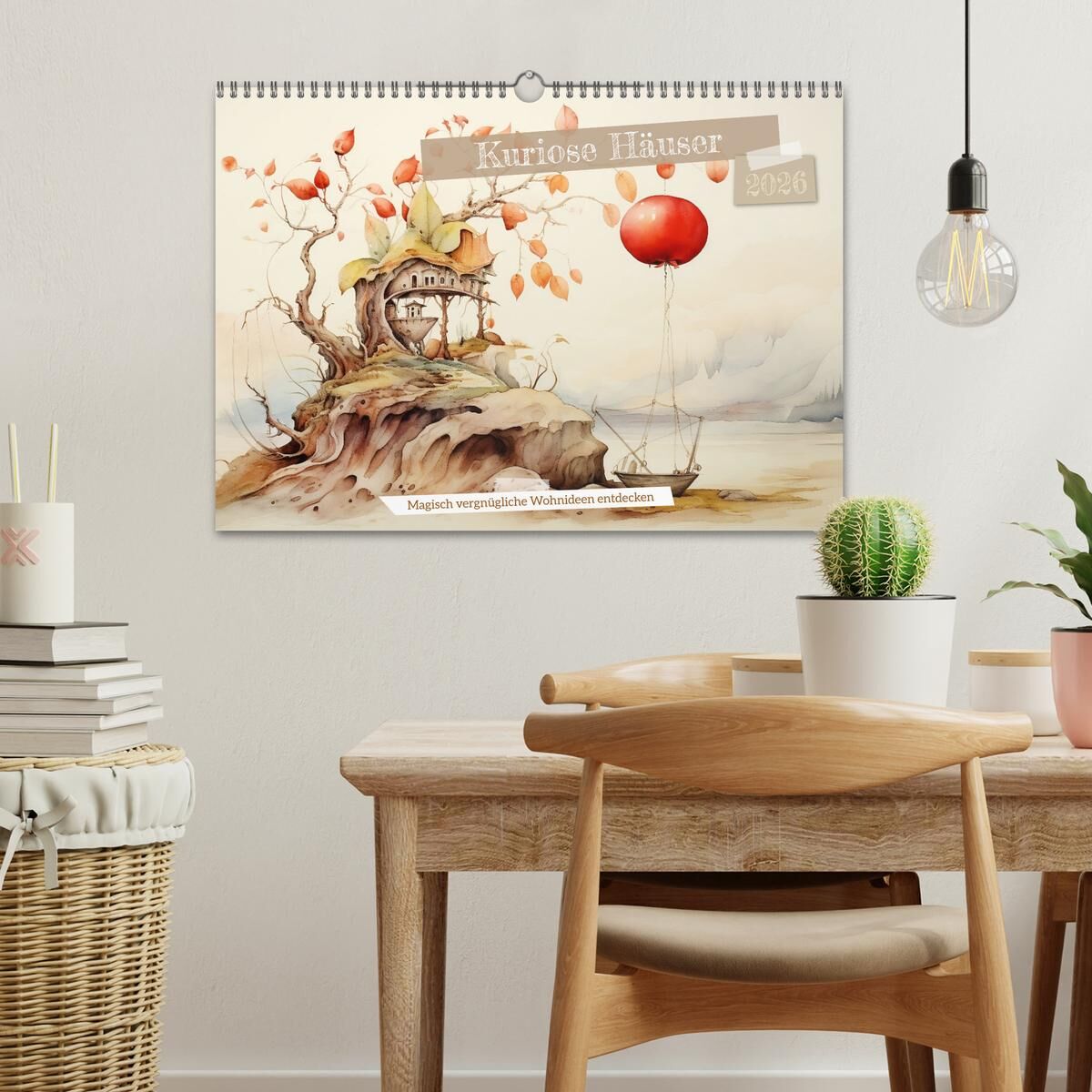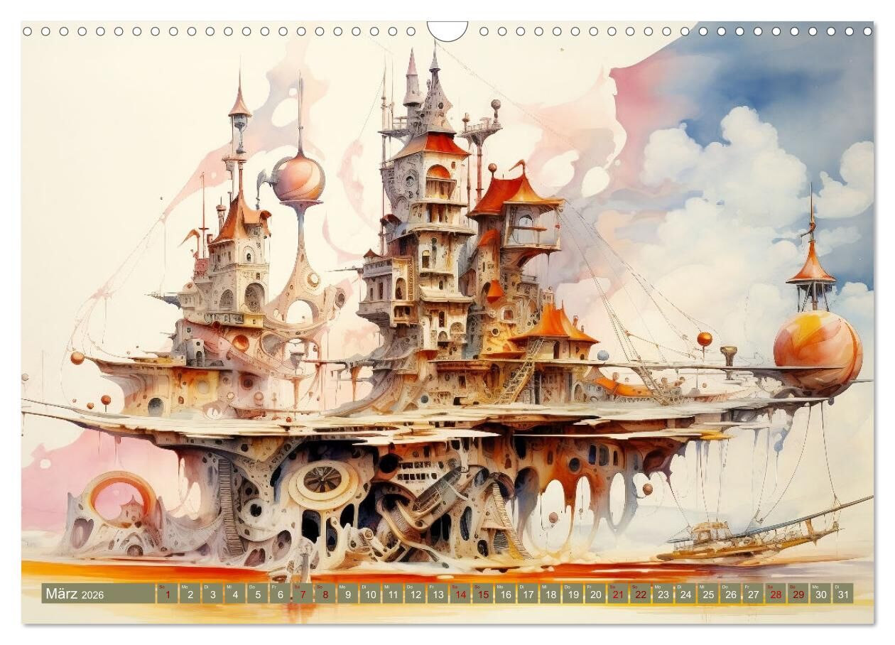 Haben Sie genug von langweiligen Kalendern, die immer nur die gleichen Bauwerke zeigen? Dann kommen Sie mit auf eine Reise ins Reich der Fantasie! Dieser Kalender zeigt Ihnen, mit Hilfe einer KI, jeden Monat ein anderes verrücktes, kreatives Haus, das mit leuc...