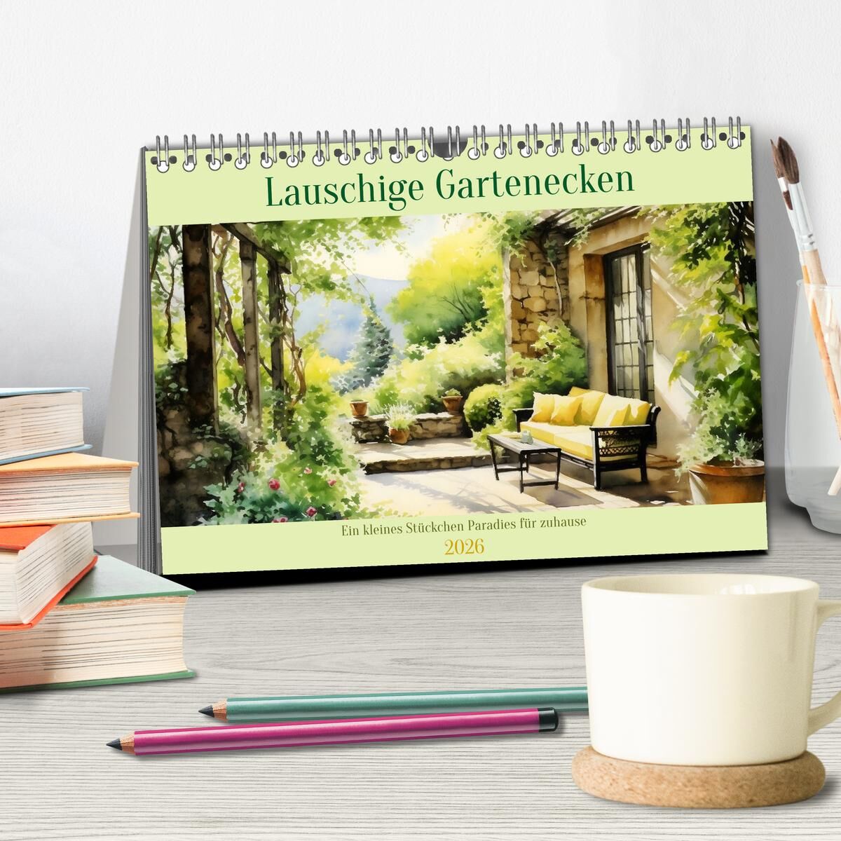 Lauschige Gartenecken (Tischkalender 2026 DIN A5 quer), CALVENDO Monatskalender