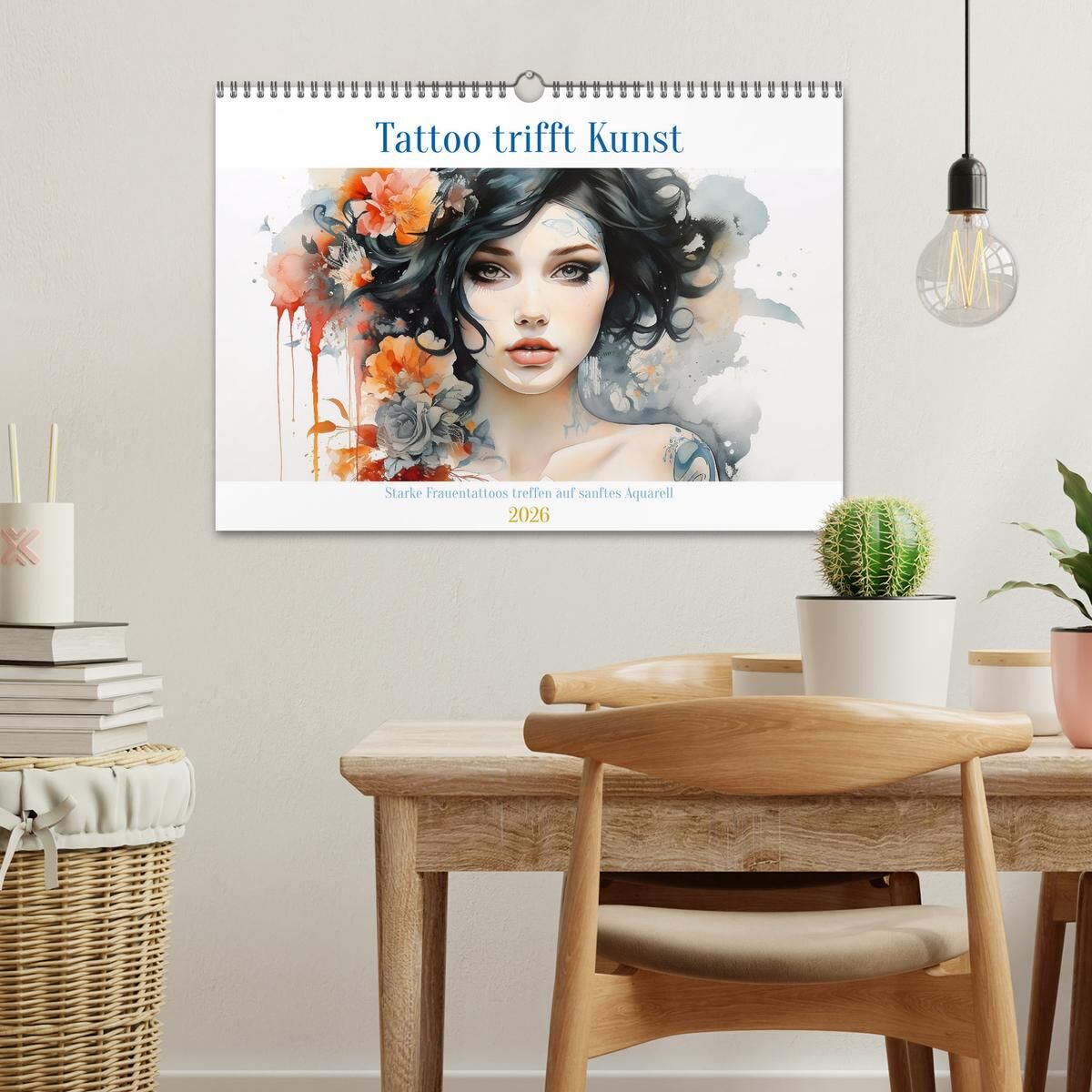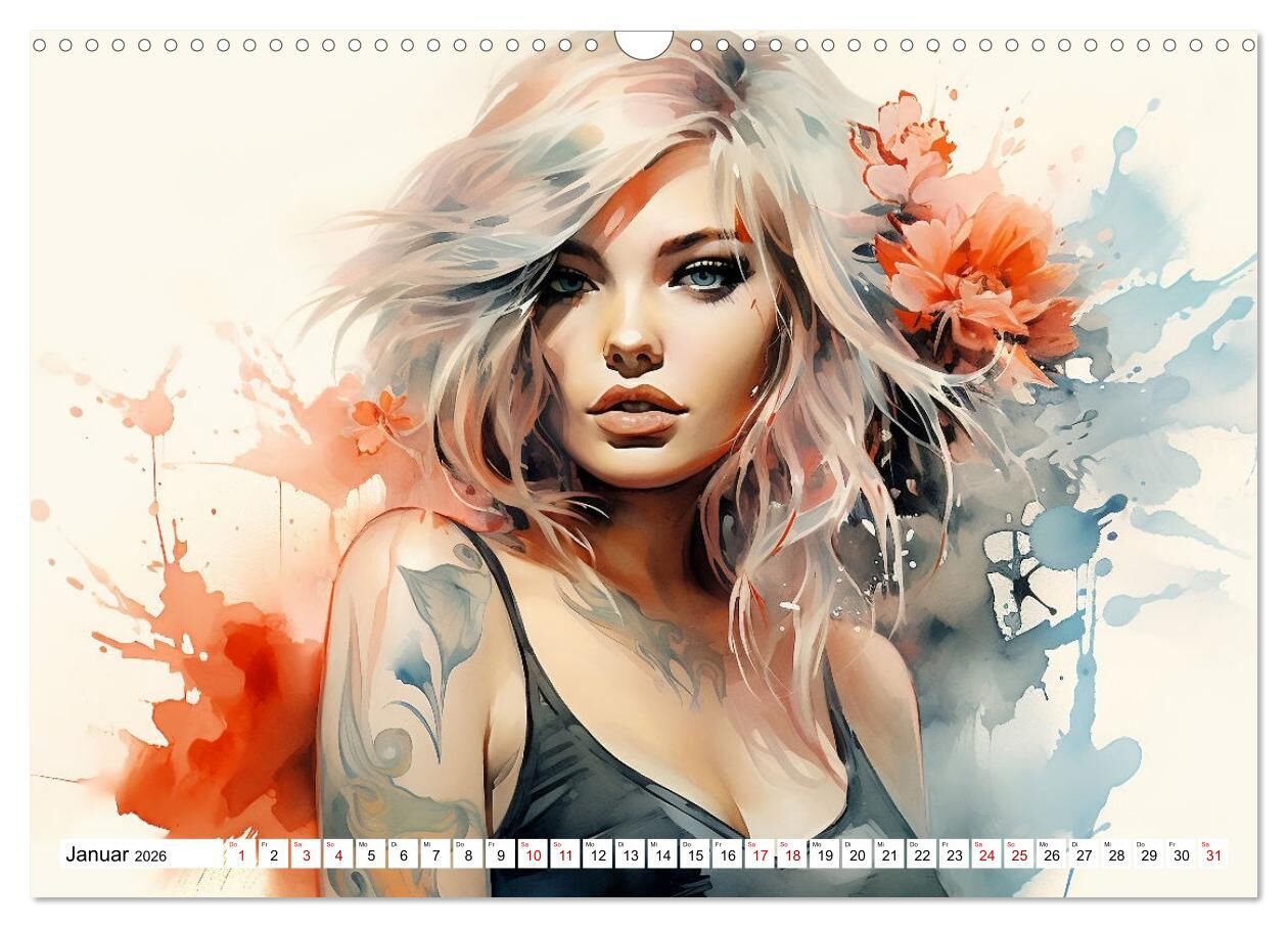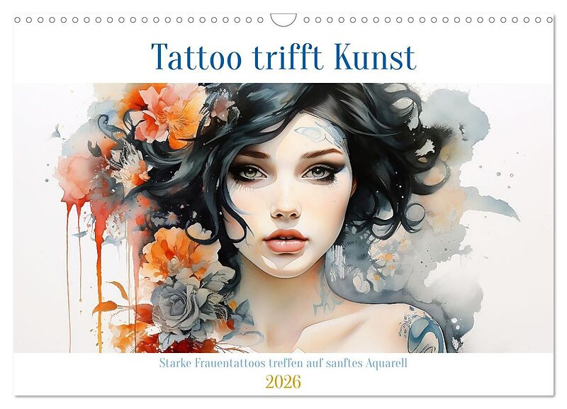 Tattoo trifft Kunst - Starke Tattoos treffen auf sanftes Aquarell (Wandkalender 2026 DIN A3 quer), CALVENDO Monatskalender