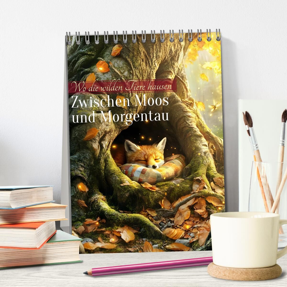 Dieser Kalender lädt dich ein auf eine märchenhafte Reise in die verborgenen Heime der wilden Tiere. Entdecke geheimnisvolle Fuchsbauten, gemütliche Eulennester und versteckte Bärenhöhlen - kunstvoll erschaffen mit der Magie künstlicher Intelligenz. Jeder Mona...