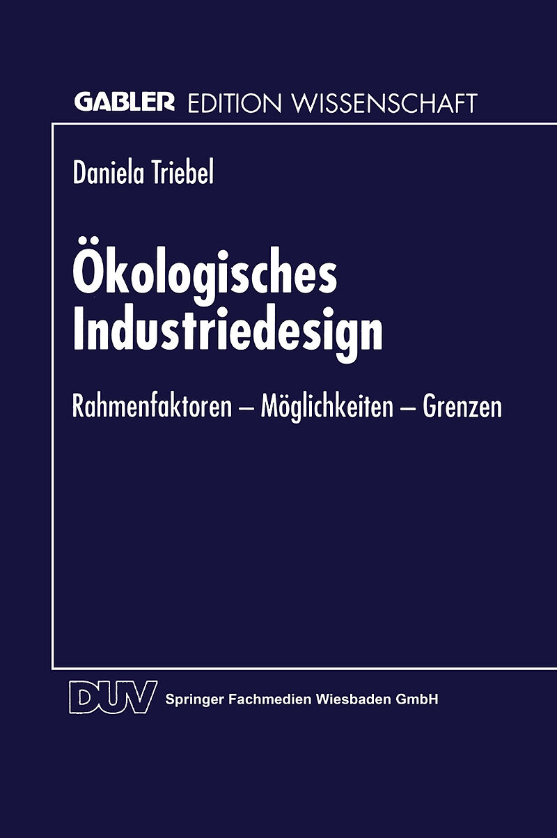 Angesichts steigender Umweltbelastungen sehen sich Unternehmen mehr und mehr gefordert, Beiträge zum Umweltschutz zu leisten. Im Rahmen präventiver Umweltschutzkonzepte erhält die Entwicklung ökologischer Produkte eine zentrale Bedeutung. Daniela Triebel entwi...