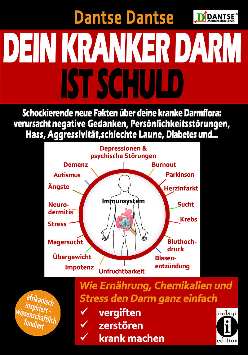 Wissenschaftlich, ja oder nein? Am Ende ist alles Wissenschaft: Die Geschichte meines Vaters und des französischen Priesters (um 1940) Vorwort Sorge dich selbst um deine Gesundheit: Heil dich selbst, sonst heilt dich keiner Einführung Dantse Nutritional Logic 15/85 Eine kleine, persönliche Geschichte über den Zusammenhang zwischen Ernährung, Lebensmitteln und der Gesundheit 1. Afrika vs. Europa Am Anfang war der Darm, er war dem Hirn überlegen, er war das ursprüngliche Gehirn 1.1 Am Anfang war der Darm und nicht das Hirn 1.2 Darmbakterien züchten: Eine afrikanische Therapie, um Krankheiten zu heilen 1.3 Der Fehler der Schulmedizin ist es, den Menschen nicht ganzheitlich zu behandeln 1.4 Schulmedizin und Naturmedizin müssen unbedingt zusammenarbeiten Teil A Der Darm und seine Funktionen: Was passiert im Darm? 2. Was ist der Darm? 2.1 Der Verdauungsprozess 2.2 Dünndarm-Funktion 2.3 Dickdarm-Funktion 2.4 Die Macht des Darms als Nerven- und Denkzentrum: Stärker als das Gehirn 3. Darmflora und Darmbakterien 3.1 Was ist die Darmflora (Mikrobiom)? 3.2 Vaginalflora: Die Darmflora wird vererbt wie die Mutter, so das Kind 3.3 Darmbakterien können genau wie DNA und Fingerabdrücke zur Identifikation herangezogen werden 3.4 Wir sind zum großen Teil Bakterien 3.5 Darmflora und Gesundheit: Unsere Darmbakterien sind die Medikamente von morgen 3.6 Die Macht des Darms als Medizinzentrum: Was Darmbakterien alles können 3.7 Darmflora & Sexualität 3.8 Frauen und Männer haben eine unterschiedliche Darmflora 3.9 Der Darm und Liebesgefühle: Darmbakterien und Küssen Teil B Der Darm und Krankheiten 4. Krankheiten des Darms: Wie und warum wird der Darm krank? Was kann die Darmflora schädigen? 4.1 Erste Anzeichen dafür, dass der Darm krank ist 4.2 Eine kranke Vaginalflora schädigt den Darm des Ungeborenen 4.3 Kaiserschnitt 4.4 Krankheiten in der Kindheit, zu viel Sauberkeit und Flaschenmilch 4.5 Medikamente: Antibiotika, Antibabypille, Fluoride 4.6 Schilddrüsenhormone 4.7 Schlechte Ernährung 4.8 Wasser mit Kohlensäure 4.9 Fades Essen: Gewürz- und kräuterarme Ernährung 4.10 Schlacken 4.11 Vitamin D Mangel 4.12 Tabak und Alkohol 4.13 Allergische Reaktionen 4.14 Lebensmittelunverträglichkeiten 4.15 Vitalstoffmangel 4.16 Krankheiten 4.17 Dauerstress, negative mentale Einstellung, psychische Störungen 4.18 Chemikalien, Umweltgifte und übertriebene Hygiene im Alltag 4.19 Wenig Kauen 4.20 Zu kaltes oder zu heißes Essen 4.21 Abendbrot 4.22 Darmtrümmer: Fäkalienreste im Darm 4.23 Dauerdiät 4.24 Überlastung des Körpers: Über 2 Stunden langes intensives Training 4.25 Bewegungsmangel 5. Darmstörungen und dadurch verursachte Krankheiten 5.1 Leaky Gut oder Permeable Bowel Syndrom (durchlässige Darmwand) 5.2 Immunschwäche und Infektionsanfälligkeit 5.3 Entzündungen 5.4 Stoffwechselstörungen 5.5 Schilddrüsenerkrankungen 5.6 Psychische Krankheiten: Depressionen, Ess- & Verhaltensstörungen, Verwirrung, Angst, Stress 5.7 Gefühls-, Emotions- und Wahrnehmungsstörungen 5.8 Neurologische Erkrankungen 5.9 Autismus und ADHS 5.10 Bluthochdruck und Herzkrankheiten 5.11 Hoher Cholesterinspiegel 5.12 Darmentzündungen, Morbus Crohn und Colitis ulcerosa 5.13 Darmtumore, Darmkrebs und weitere Krebserkrankungen 5.14 Mangelerscheinungen 5.15 Lebensmittelunverträglichkeiten & N…