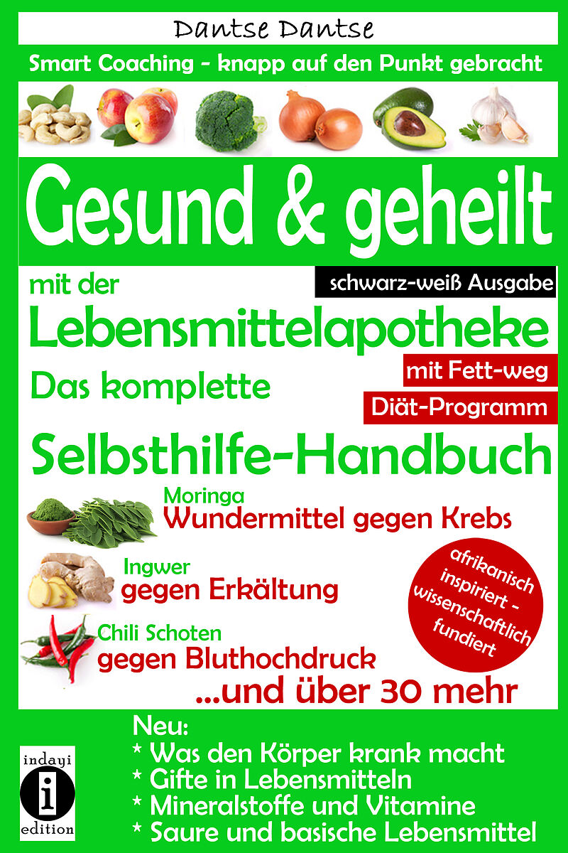 Ein Ratgeberbuch, das wirklich hilft und nachhaltig gesund, vital und jung macht. Mit Moringa einem Wundermittel aus Afrika kannst du dich vor Krebs und Alzheimer schützen oder ihre Heilung unterstützen. Mit Okra kannst du Wechseljahrbeschwerden beseitigen! Mit Papaya kannst du Cellulite und Akne bekämpfen! Über 20 Jahre lang kaum krank und nie Tabletten alles Dank einer gezielten Ernährung? Mit 50 so gesund, wie ein Mittzwanziger? Dieses Buch zeigt dir anhand der Selbsterfahrung des Autors, wie es geht In diesem Buch findet der Leser viele nützliche und ausführliche Informationen an einem Ort versammelt, es ist einfach geschrieben und für jeden leicht zu verstehen und beinhaltet neue Erkenntnisse, Tipps, Ratschläge, die dir sofort helfen und manche Beschwerden wie magisch verschwinden lassen. Dieses Buch versorgt dich mit ausführlichen Listen und Tabellen über: - Vitamine und Mineralstoffe: wo sie vorkommen, ihre Funktion, was ein Mangel verursacht - Zusatzstoffe (Konservierungsstoffe, Farbstoffe usw.) in Lebensmitteln, sortiert danach, wo man sie findet und was sie verursachen - Gifte ,Chemikalien und krebserregende Substanzen in Lebensmitteln und Gegenmaßnahmen - Krankmachende Zusatzstoffen in Lebensmittel, tabellarisch - Gefährliche Lebensmittel für Schwangere, Lebensmittel die die Muttermilch vergiften und welche, die sie verbessern - Welche Lebensmittel welche Krankheiten verstärken oder gar verursachen - Krebserregende Stoffe in Babynahrung und Muttermilch erkennen und vermeiden - Basische, bittere, säuerliche Lebensmittel - Freie Radikale und Antioxidantien - Warum Milchprodukte, Zucker und Weizen Feinde unserer Gesundheit sind - Natürliche Antibiotika - Potenz- und luststeigernde Lebensmittel für Mann und Frau - Liste mit über 30 Krankheiten und den Lebensmitteln die sie bekämpfen - Zwei Programme zum Fett- und Gewichtsabbau - Und mehr Die integrierte Ernährungs- und Gesundheitstagebuch-Tabelle hilft dir und motiviert dich, deine Ziele zu erreichen indem du die Ergebnisse messen kannst. Dantse, Coach und Autor dieses Buches, war in den letzten 20 Jahren weniger als fünfmal beim Arzt und wenn, dann nur wegen seines Leistenbruchs. Seit Jahren hat er keine Erkältung, Migräne und in über 20 Jahren hat er keine einzige Tablette genommen. Bei seiner letzten ärztlichen Untersuchung bescheinigte ihm der Arzt die Gesundheit und körperliche Verfassung eines Mittzwanzigers, obwohl er 50 ist. Grund dafür ist vor allem seine Ernährung und sein Lebensstil, die er nun mit euch teilen möchte. Was er seine Kunden lehrt und nun auch den Lesern zeigt, setzt er an sich selbst um und das macht alles authentisch. Das ist fast wie ein Selbsterfahrungsbuch. Unserer Lebens- und Essgewohnheiten haben sich in den letzten Jahren gewandelt und dadurch bedingt haben bestimmte chronische Krankheiten wie Fettleibigkeit, Diabetes, Osteoporose, Herz-Kreislauf-Erkrankungen, Alzheimer, Parkinson, Krebs, oder Zahnerkrankungen besonders in den westlichen Ländern zugenommen. Wie können gesunde Ernährung und Bewegung uns helfen, das Risiko, an diesen chronischen Krankheiten zu erkranken, verringern oder sie so zu bekämpfen, dass sie gar nicht erst entstehen? Der Ernährungsspezialist Dantse zeigt dir in diesem Buch, wie du mit nur einigen Tipps gesund bleibst. Weit über 30 Beschwerden sind alphabetisch aufgelistet, mit den wichtigsten Lebensmitteln, die zur Heilung beitragen oder dich vor einer Erkrankung schützen. Der Autor erweitert das Wissen der Leser und bereichert sie mit sehr vielen neuen Informationen und mit exklusiven Erkenntnissen über neue Stoffe und Lebensmittel, wie selten ein Buch zuvor. Dies ist nur möglich, weil er vieles aus Afrika mitbringt, neue Lebensmittel mit erstaunlichen Heilkräften, die zwar Forschern und Wissenschaft, aber noch nicht dem normalen Menschen bekannt sind. Die Mischung aus wissenschaftlichen Fakten, seinen Lehren aus Afrika, eigenen Erfahrungen als Coach und Ernährungsberater macht dieses Buch zu einem Wissensschatz!