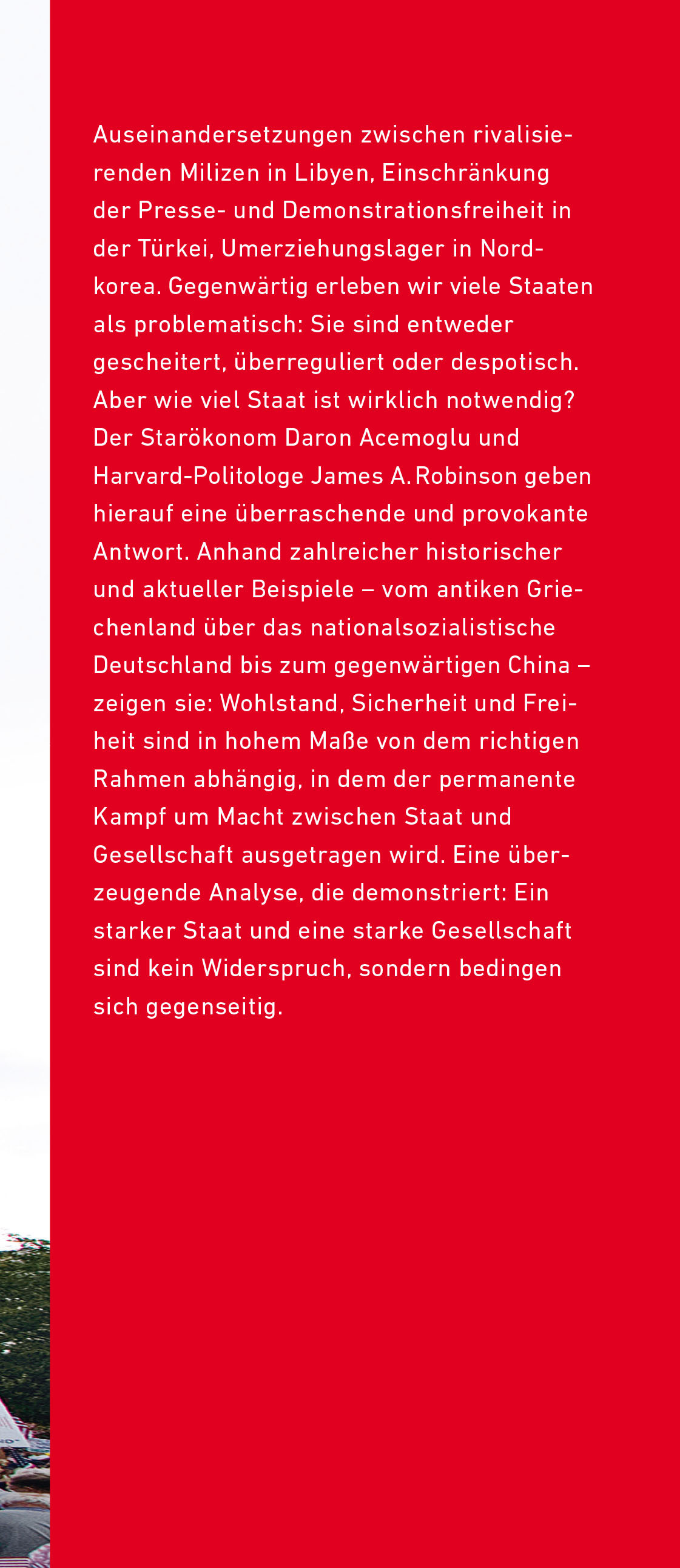 Von den Wirtschaftsnobelpreisträgern 2024 Wie viel Staat muss sein? Nach dem internationalen Bestseller »Warum Nationen scheitern?« widmen sich Starökonom Daron Acemoglu und Harvard-Politologe James A. Robinson in ihrem neuen Buch dieser fundamentalen Frage. ...