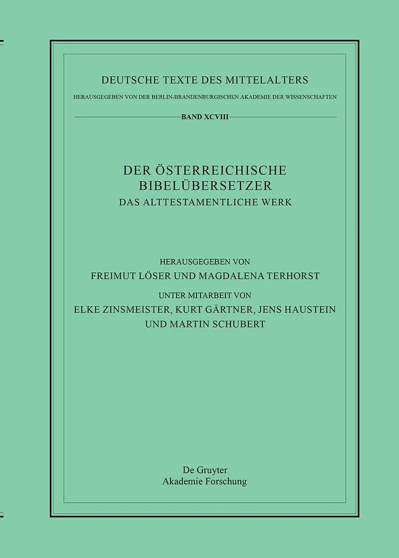 This volume is the first to present an edition of the Old Testament Works by Anonymus, who has been designated the Austrian Bible Translator and who plays an important role in the history of bible translation before Luther. The translated biblical books, some...