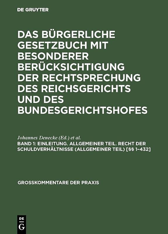 Das Bürgerliche Gesetzbuch mit besonderer Berücksichtigung der Rechtsprechung... / Einleitung. Allgemeiner Teil. Recht der Schuldverhältnisse (Allgemeiner Teil) [§§ 1432]