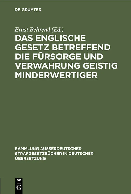 Keine ausführliche Beschreibung für "Das englische Gesetz betreffend die Fürsorge und Verwahrung geistig Minderwertiger" verfügbar. Frontmatter -- Inhaltsverzeichnis -- Teil I. Befugnisse und Maßnahmen gegenüber geistig Minderwertigen -- Teil II. Zen...