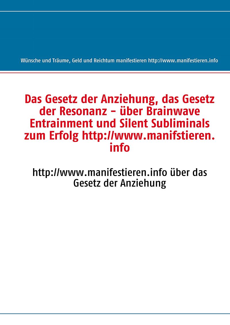 Das Buch von http://www.manifestieren.info - hier erfahren Sie alles über das Gesetz der Anziehung, die richtige Art es anzuwenden, Sachen, Träume und Wünsche mit Hilfe des Gesetze der Resonanz in Ihr Leben zu ziehen. Silent Subliminals in Form von Affirmation...