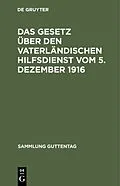 Frontmatter -- Inhaltsübersicht -- Einleitung -- I. Gesetz, Betreffend den Vaterländischen Hilfsdienst. Vom 5. Dezember 1916. (Rgbl. Nr. 276 S. 1333.) -- II. A) Regierungsentwurf -- III. Ausführungsbestimmungen -- IV. Anweisung Über Das Verfahren Bei Den Auf G...