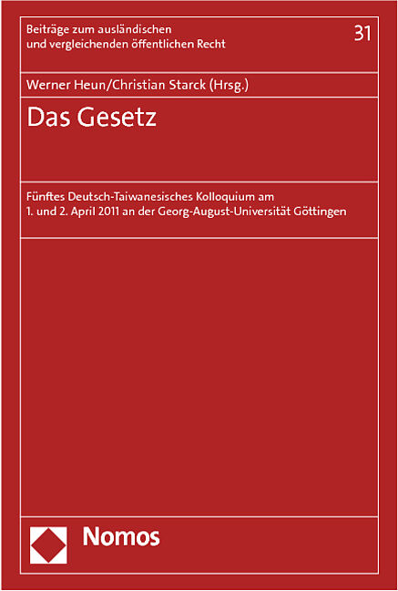 Der Band dokumentiert die Vortrge des fnften deutsch-taiwanesischen Kolloquiums zum ffentlichen Recht, das mit dem Gesetz ein zentrales Thema gerade der deutschen Verfassungsrechtswissenschaft zum Gegenstand hatte. In einer ersten Sektion finden sich eine umfa...
